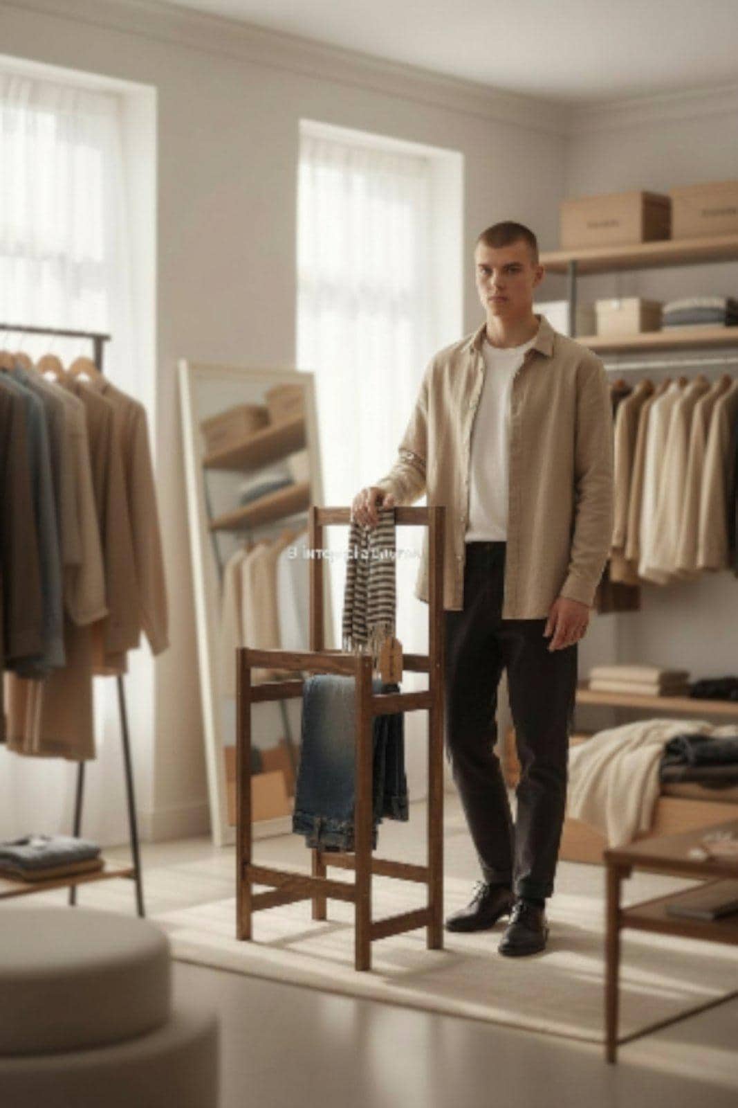 Wooden valet rack, Standing coat rack, Wardrobe stand, Wooden Floor...