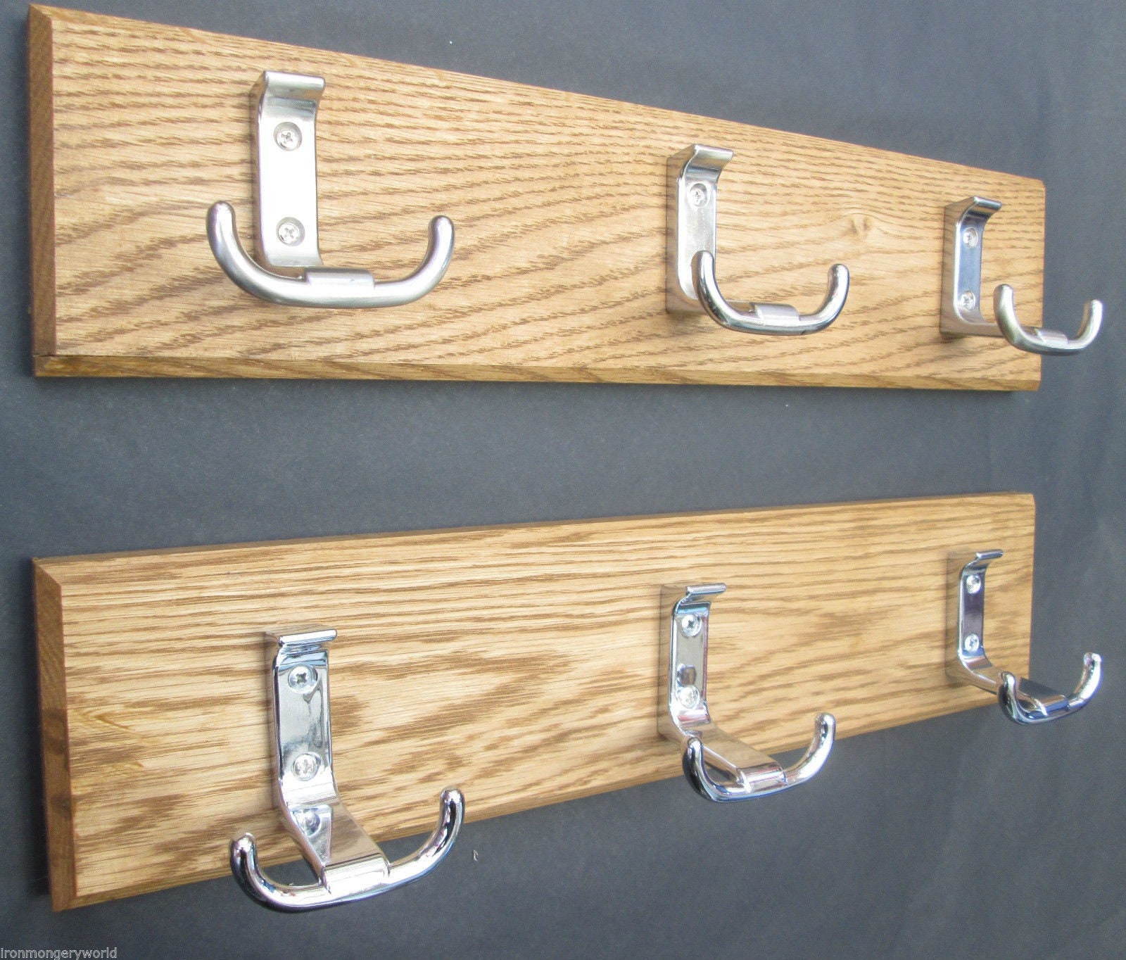UK Handmade Solid Oak Wood Rustic Wooden Wall Mounted Coat Hook Rai...