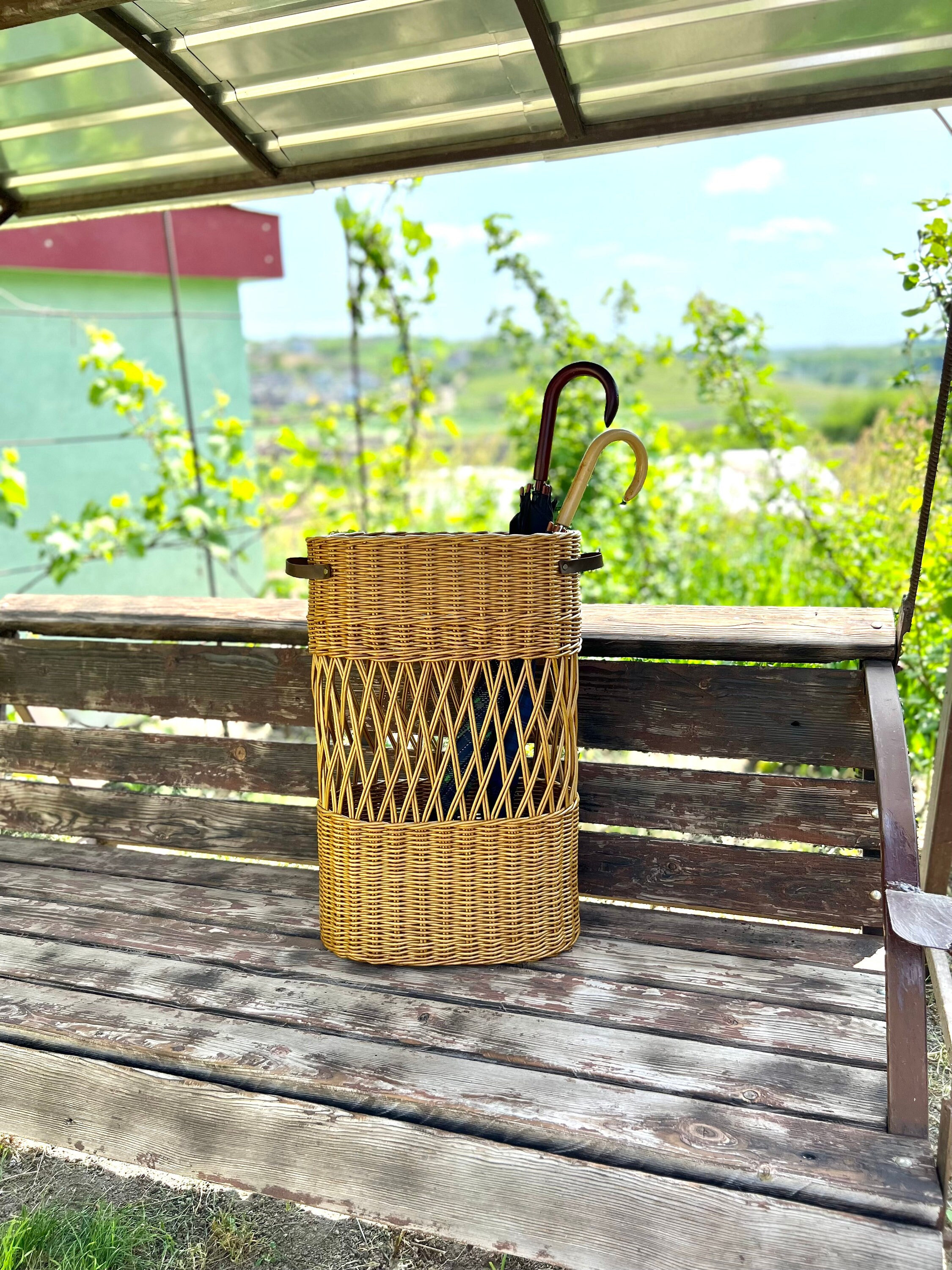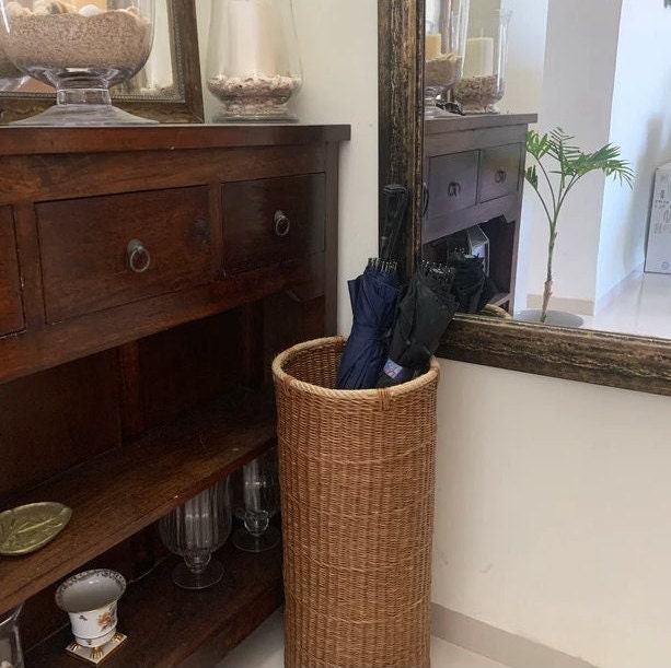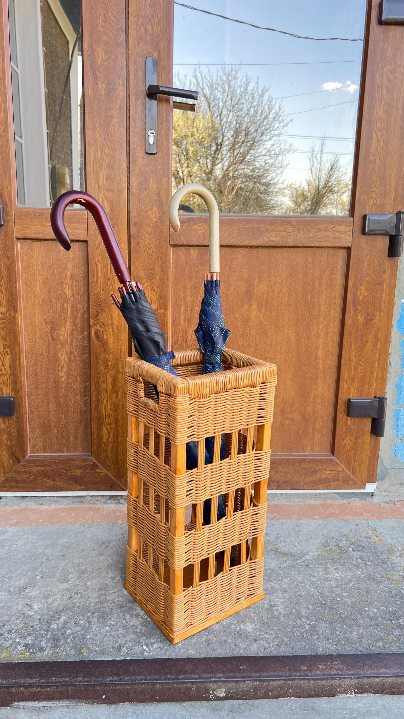 Wicker indoor umbrella stand, Umbrella basket holder, Rustic entryw...