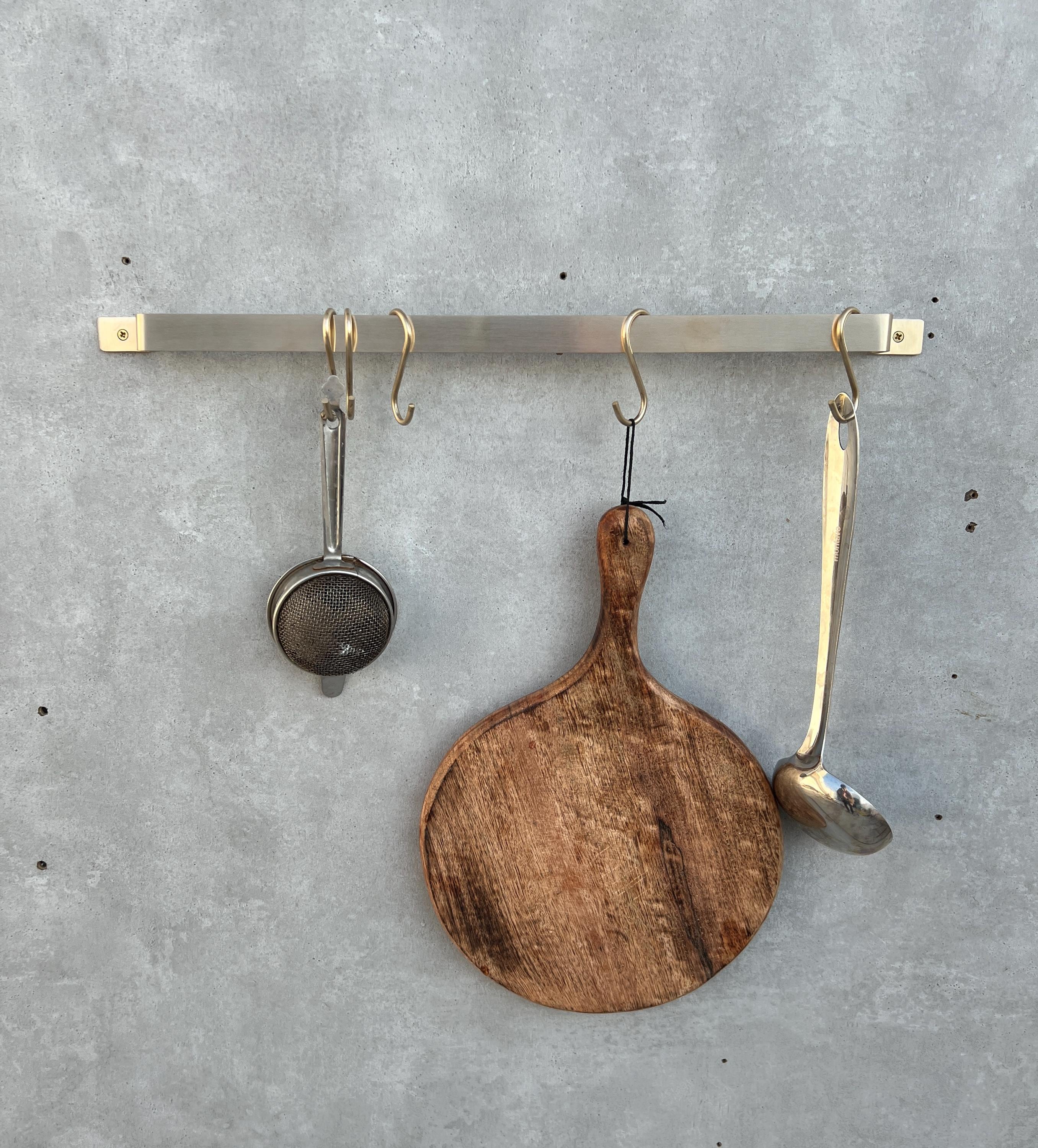 Solid Brass Wall Mount Rail with 5 Hooks: Kitchen Utensil Rack