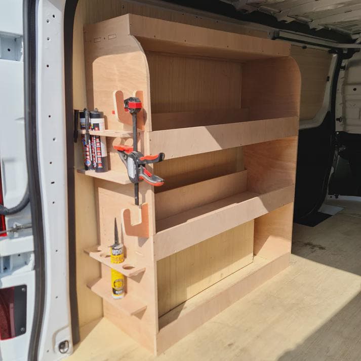 "Downloadable CNC plan for van racking Width: 750 mm Depth: 380 - 275 mm Height: 1200 mm Bit: 1...