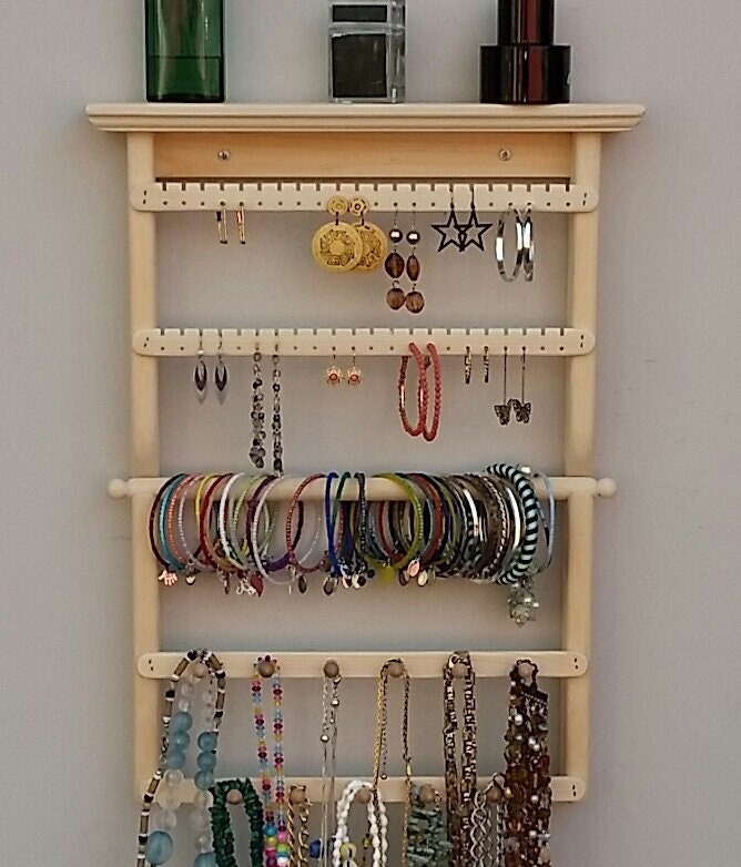 "This handmade wall mount necklace organization, jewelry organizer, earring holder, jewelry dis...