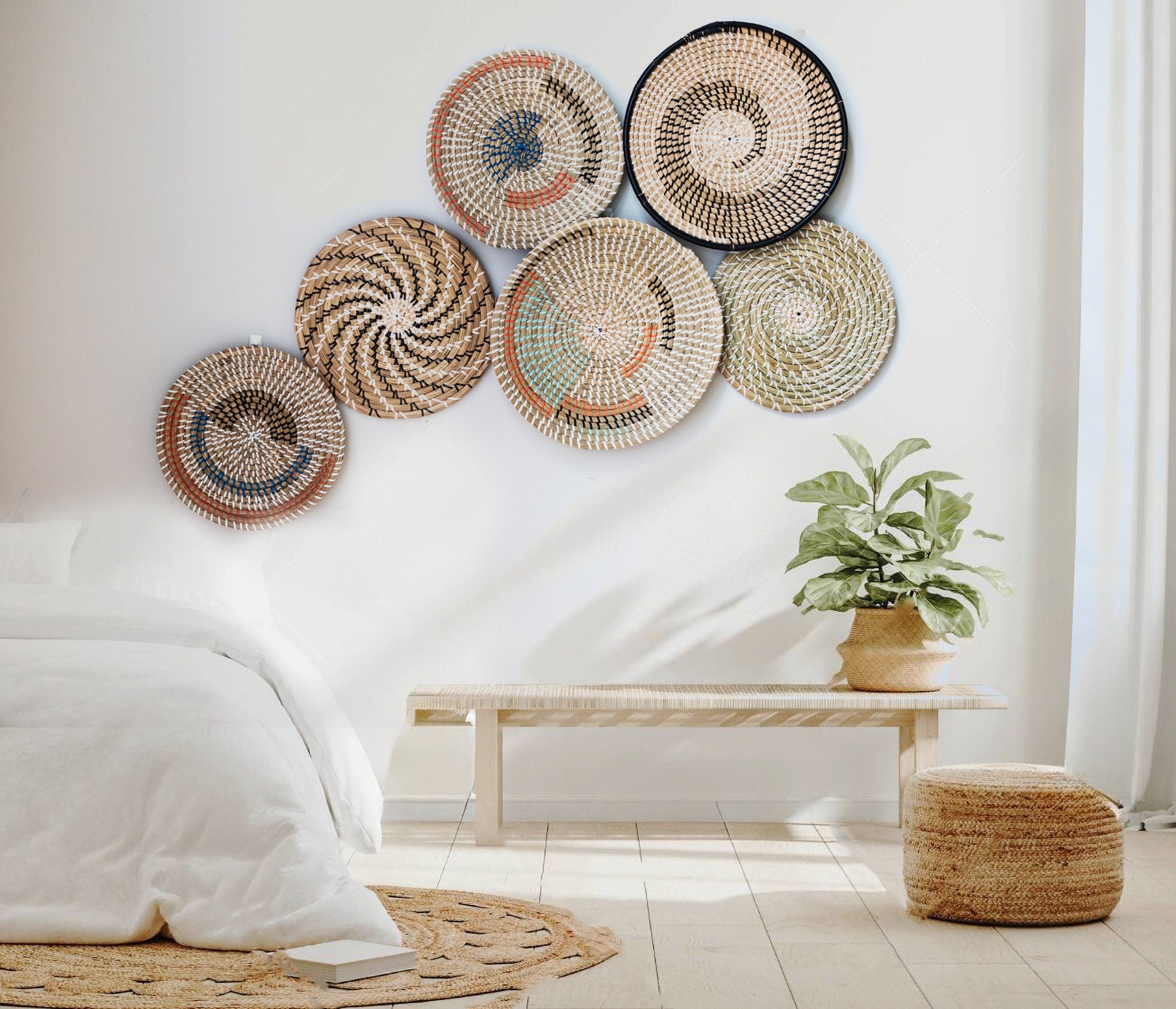 Wall basket set of 6, Basket Wall hanging, Boho wall basket, Round ...