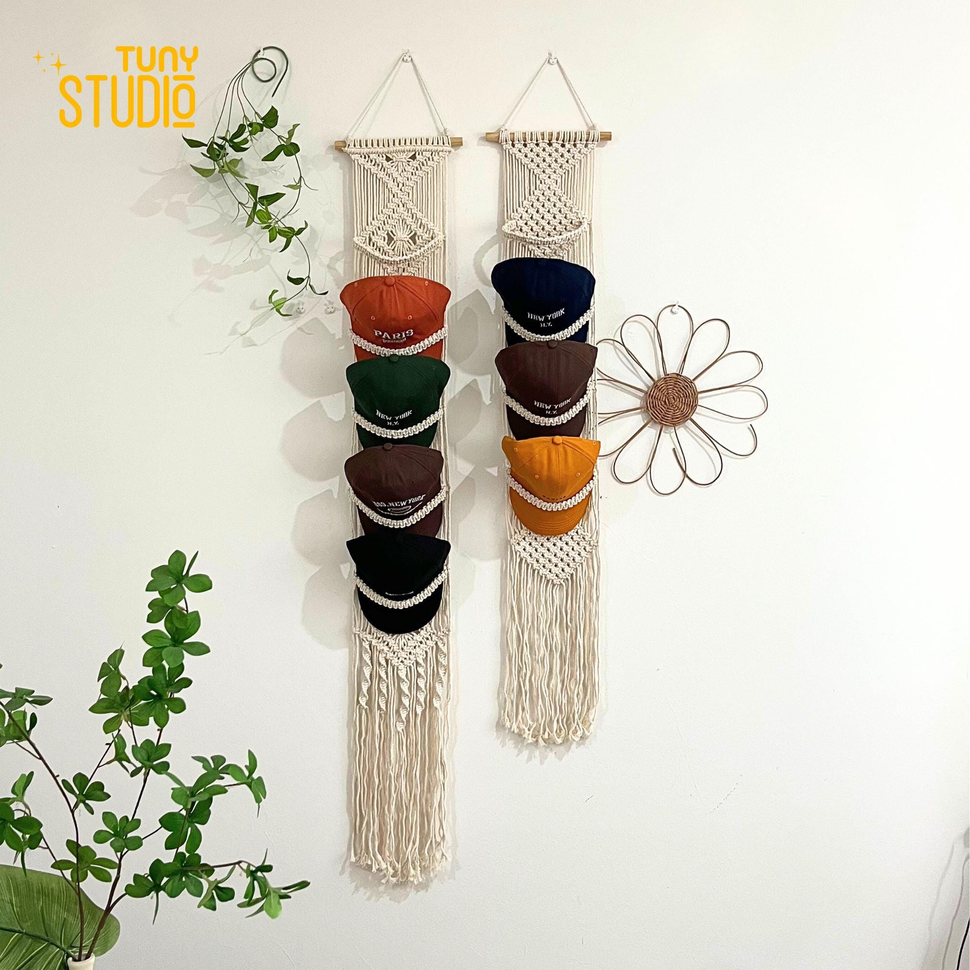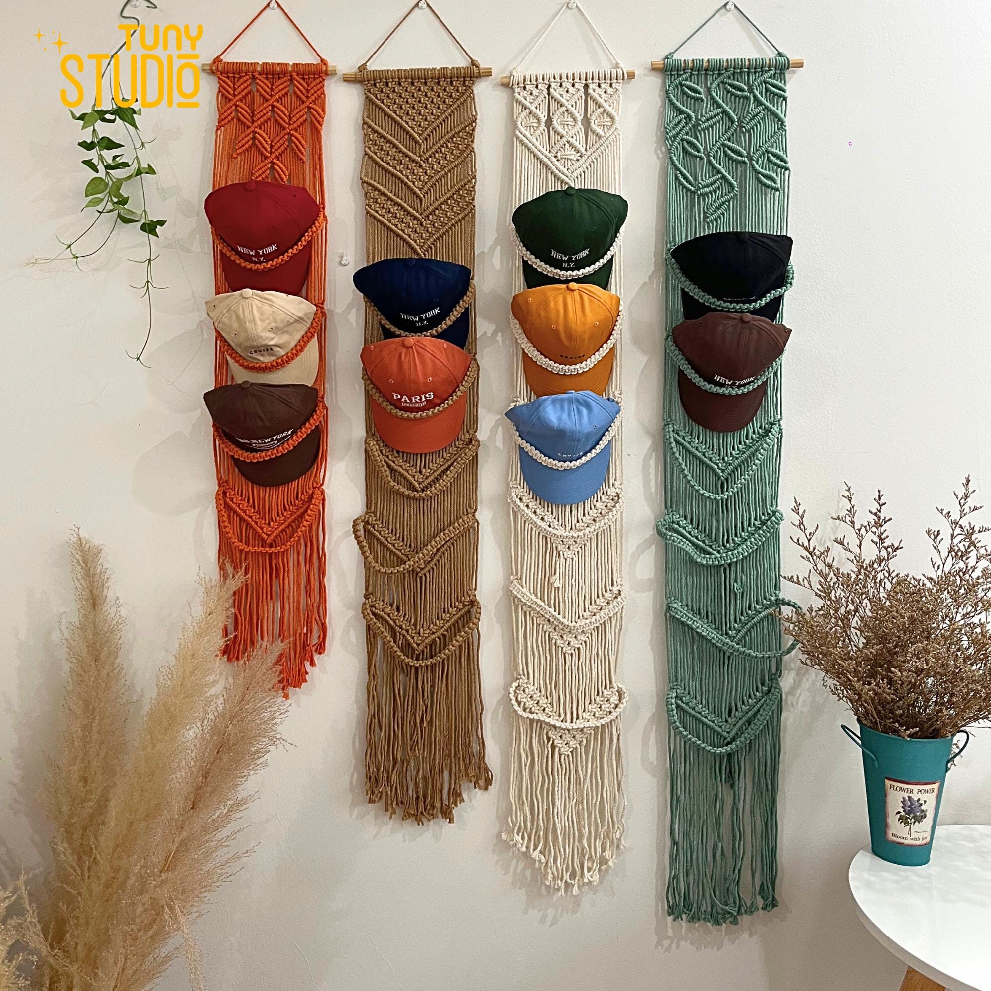 Cap Rack Wall Hanging, Macrame Cap Hanger For Wall, Hat Storage, Ba...