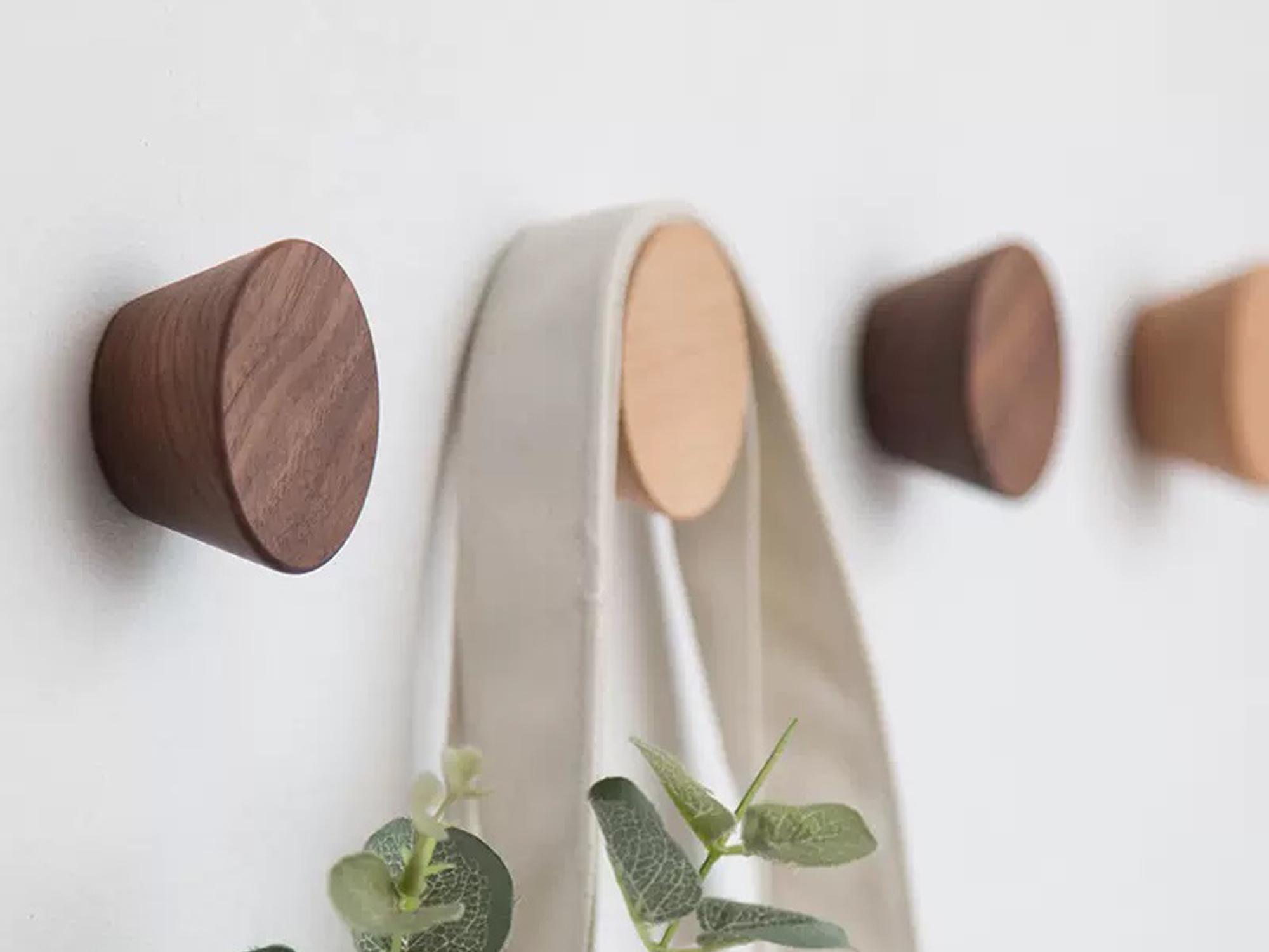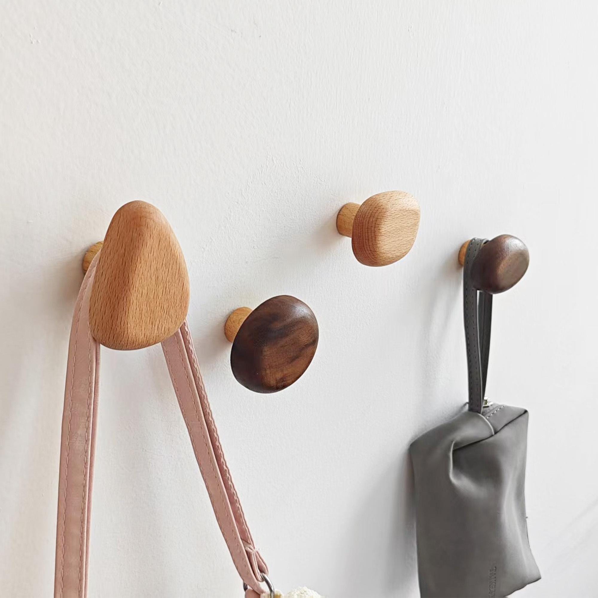 Set of 4pcs Wood Wall Pegs, Decorative Wood Wall Hooks, Modern Entr...