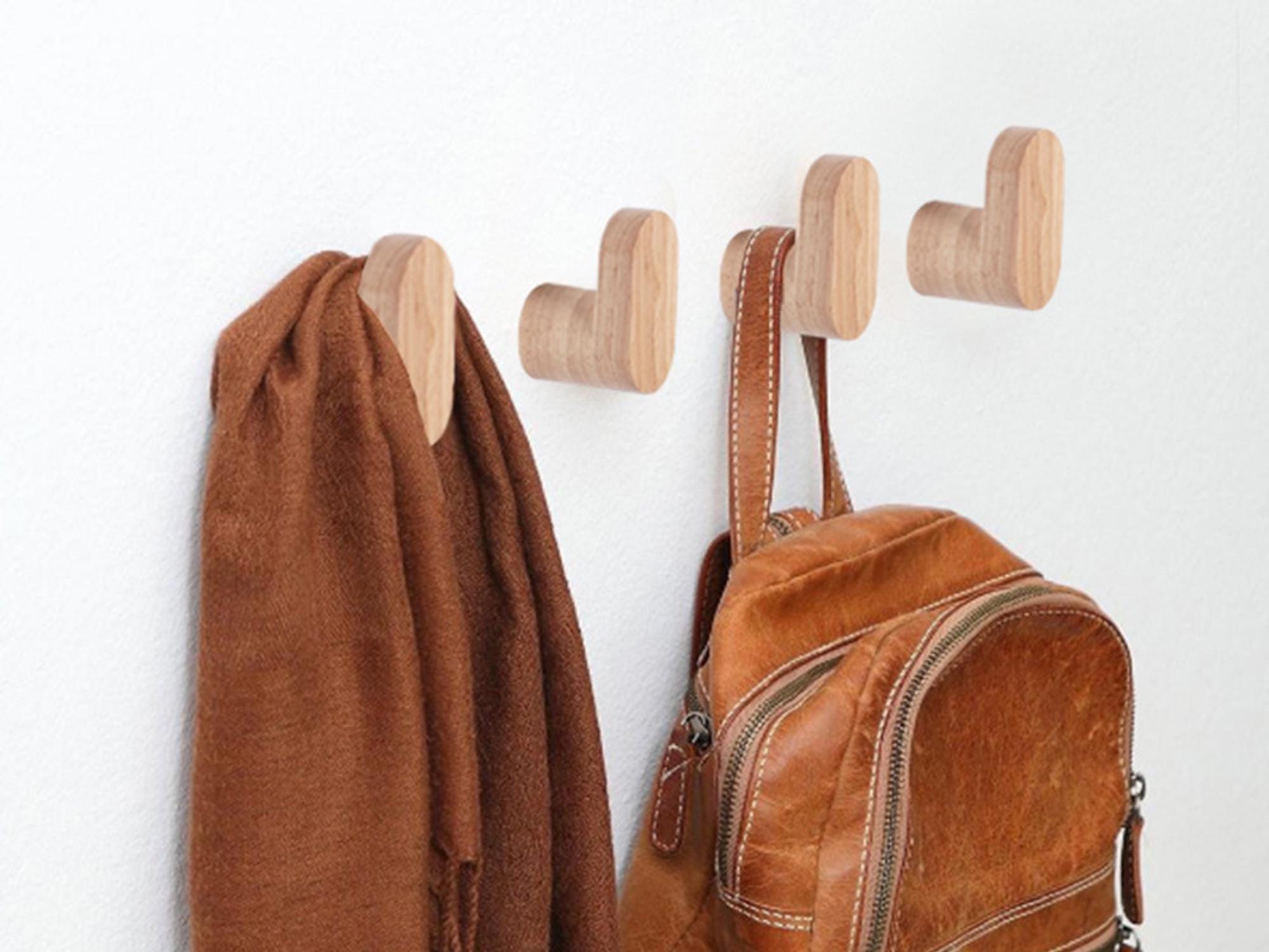 Wooden Coat Hooks For Wall, Beech Wood Wall Pegs, Entryway Wall Mou...