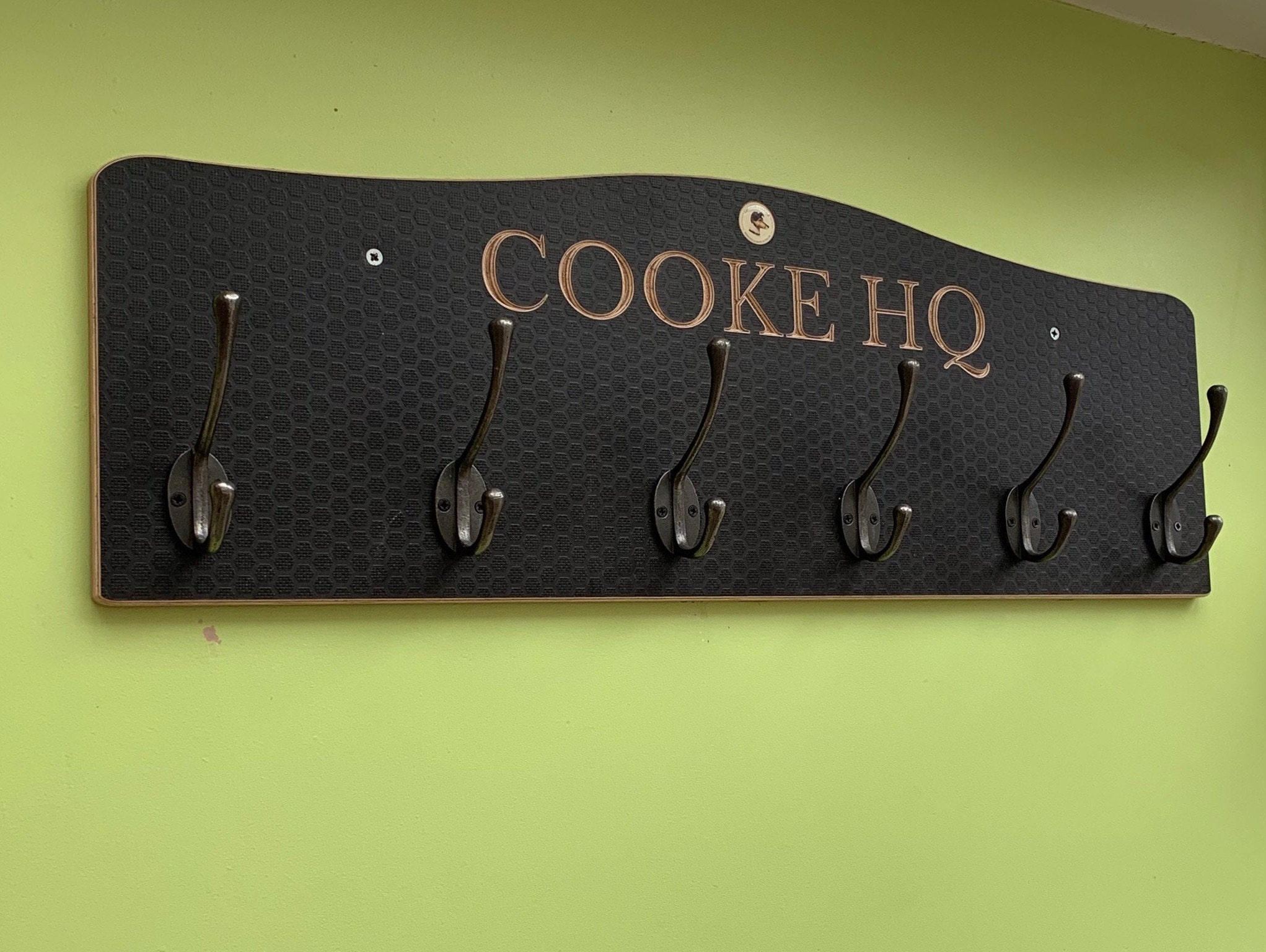 Hand Forged Five Hook Wall Mounted Coat or Storage Rack.