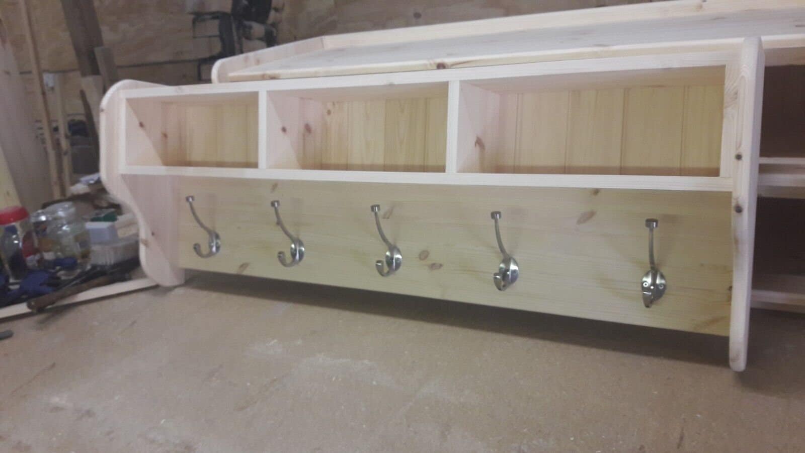 4ft solid pine wall mounted coat rack With storage compartments ANY...