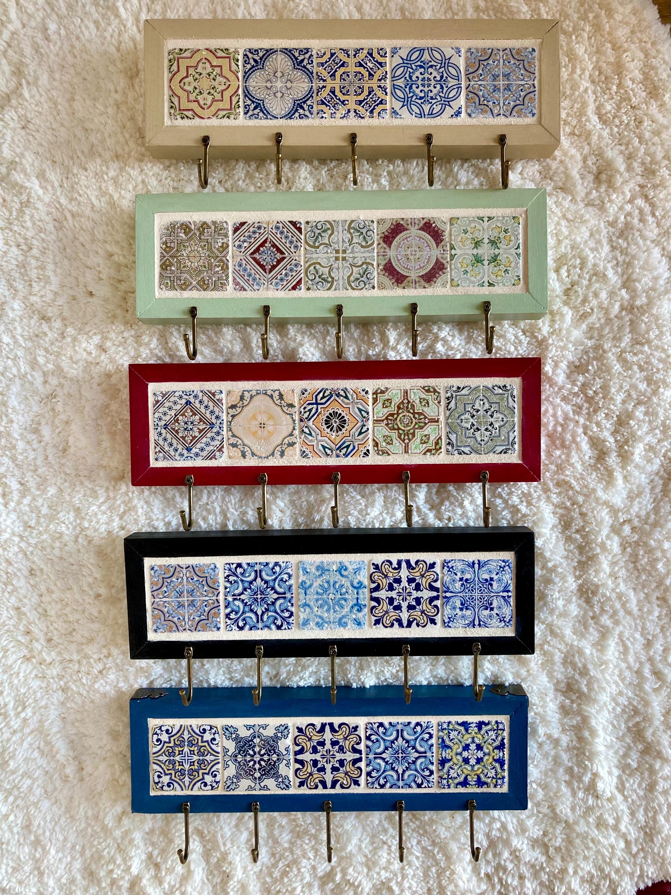 Wooden wall key holder with stone mosaic with 5 hooks or 5 magnets (depending on your choice) strong...