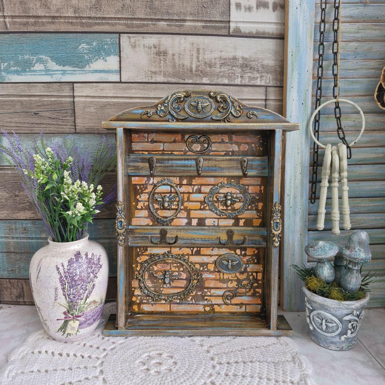 Beetle Key Organizer Handmade wooden Key Rack Key Cabinet Key Box W...