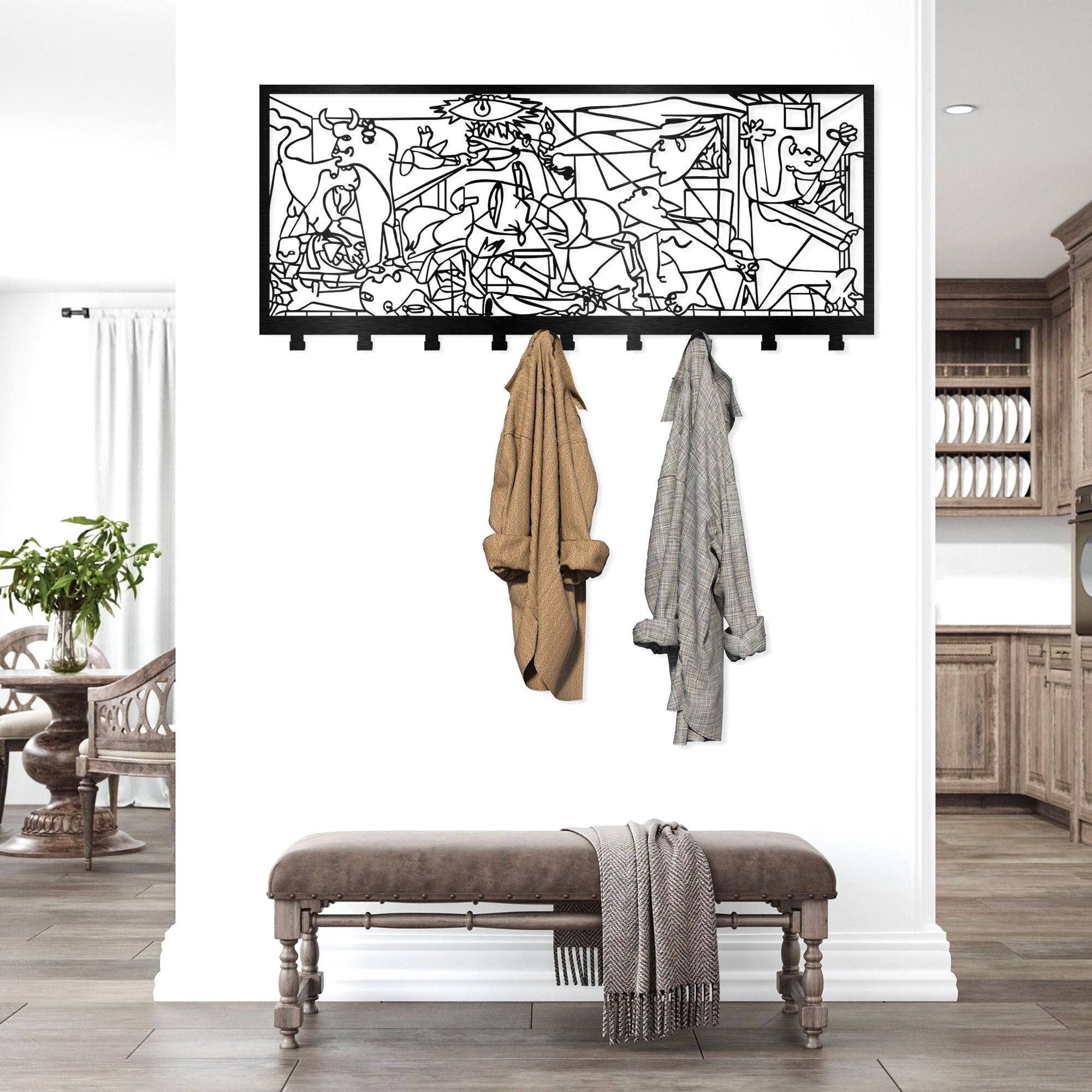 "Metal Wall Coat Rack - Guernica by Pablo Picasso, Metal Wall Art, Wall Mounted Coat Hooks Hang...