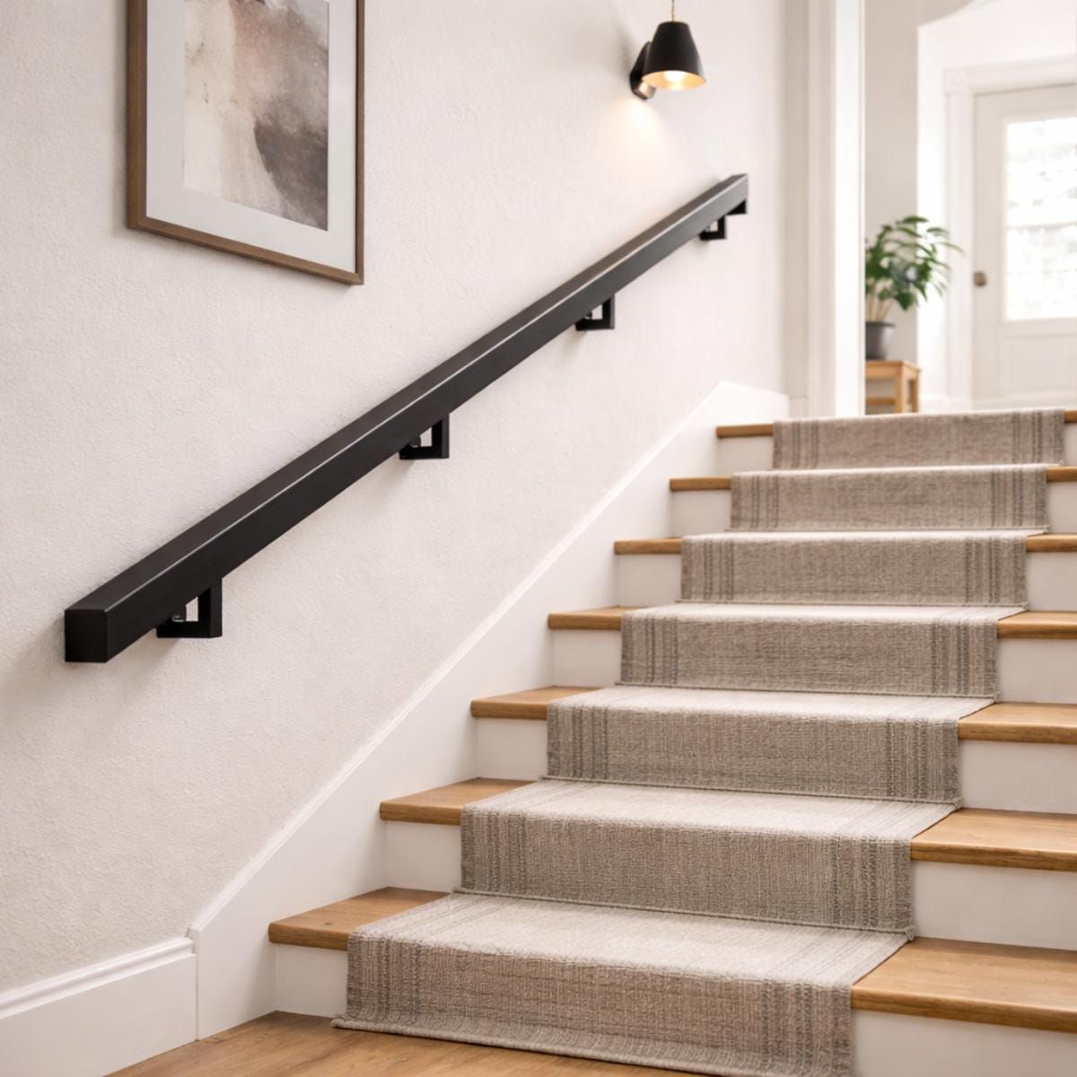 Modern Black Iron Handrail - Wall Mounted Stair Handrail for Indoor Stairs This modern black iron ha...