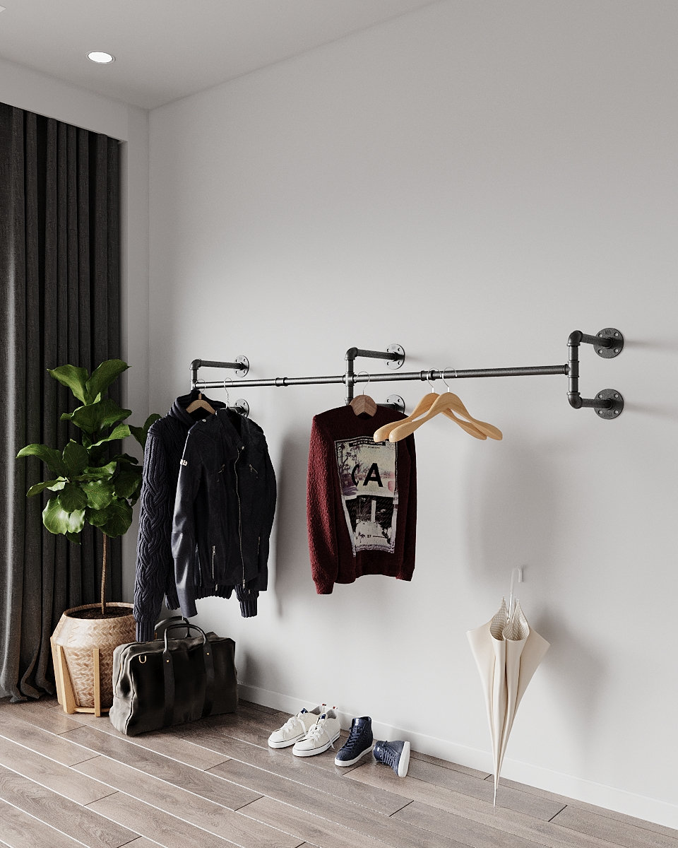 Transform your space with a heavy duty wall mounted clothes rack that combines rugged industrial sty...