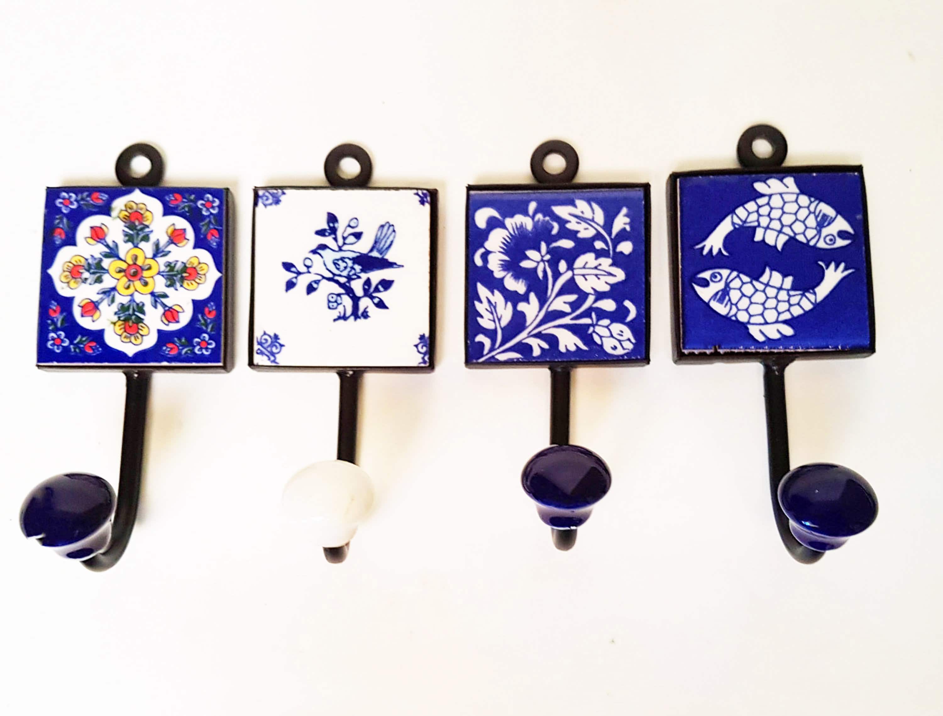 4 Zen blue and white coat hooks, wall hooks, cup hooks, towel hooks...