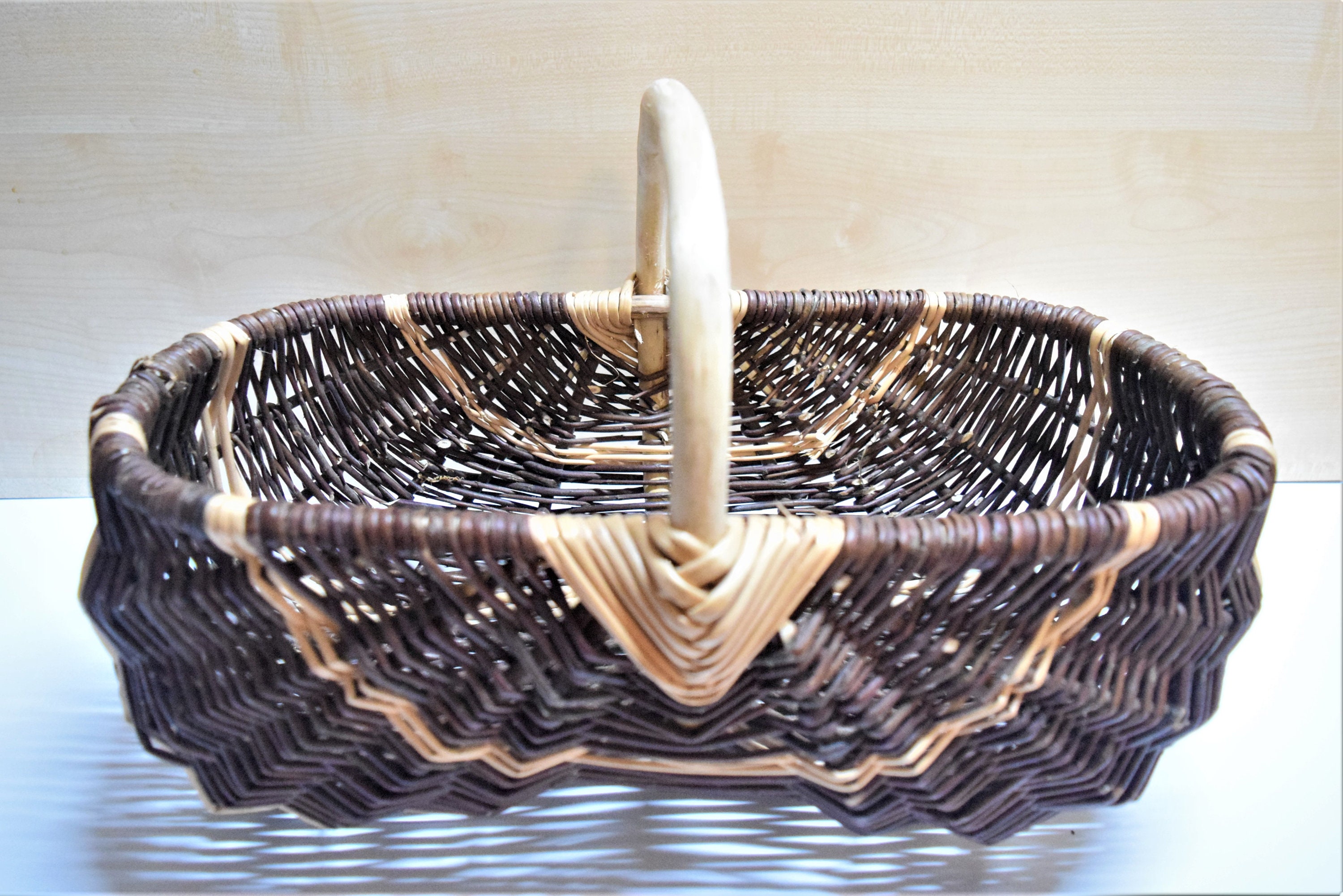 "Hand-woven natural willow basket -- versatile and practical This handmade willow basket by Feb...