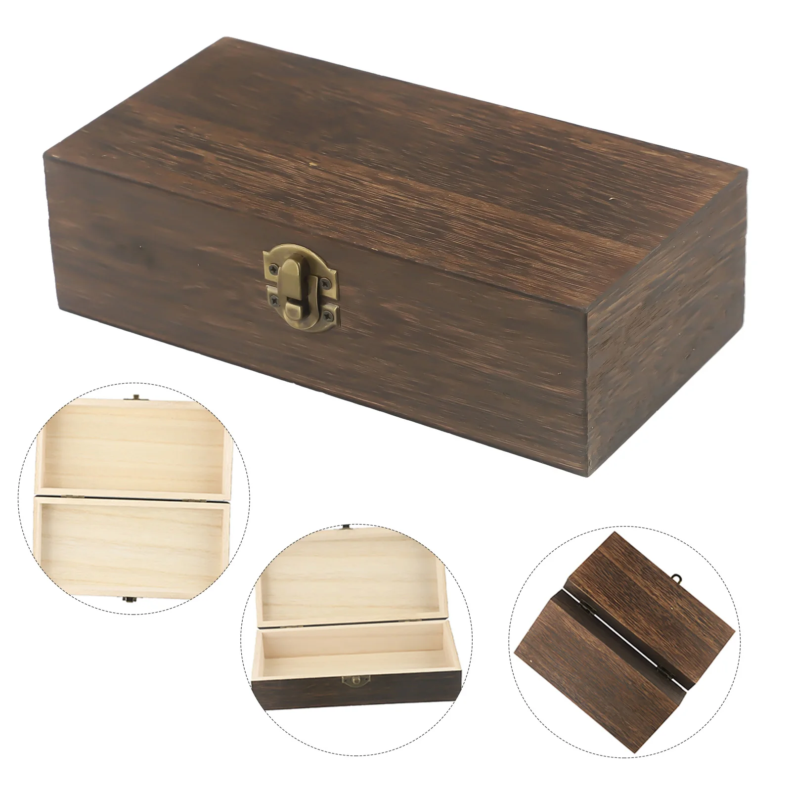 Wooden Storage Box Rectangular Retro Buckle Wood Box Clamshell Wooden Box 20 X 10 X 6 Cm Store Acces...