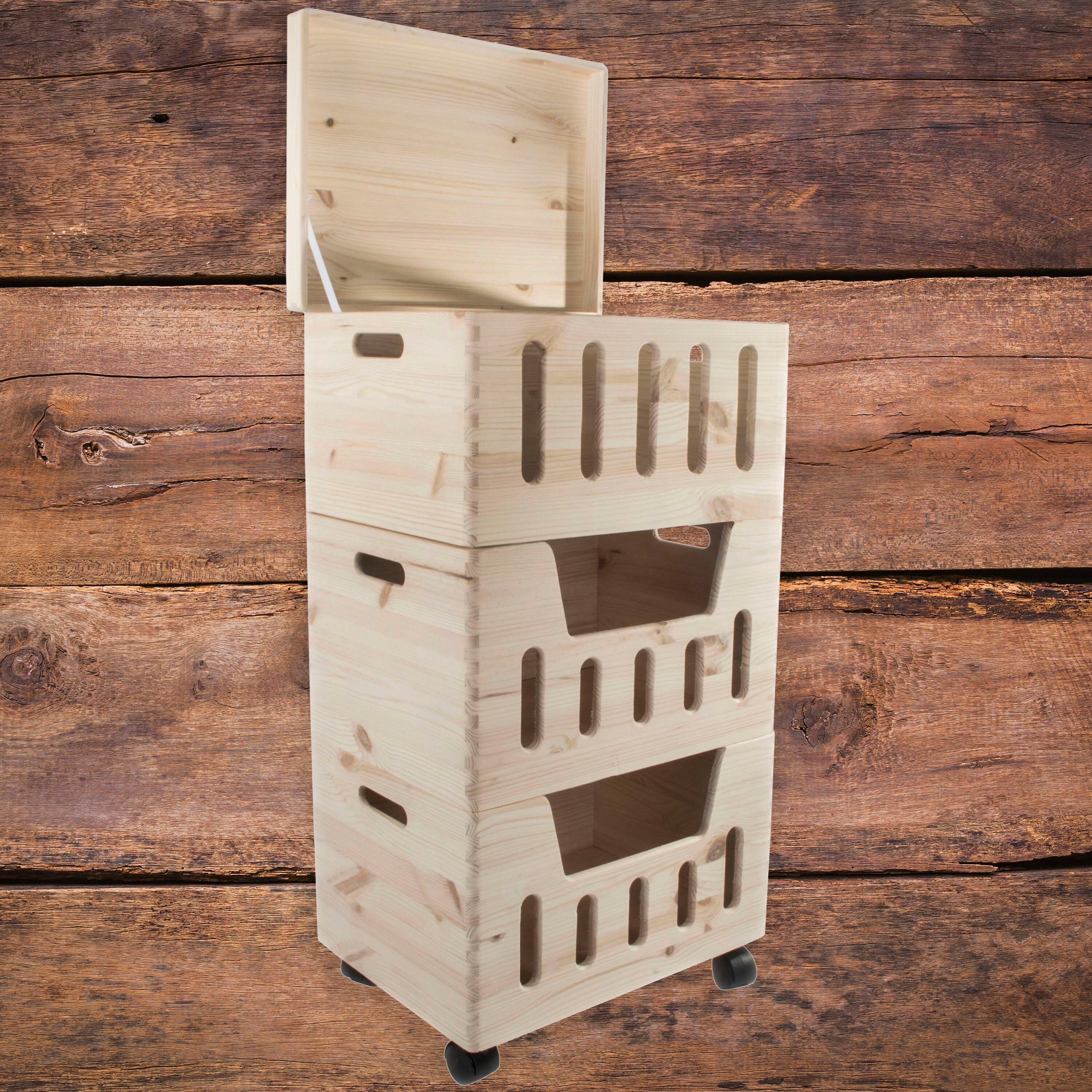 3 Tier Wooden Storage Box With Lid, Handles & Wheels | Multi-pu...