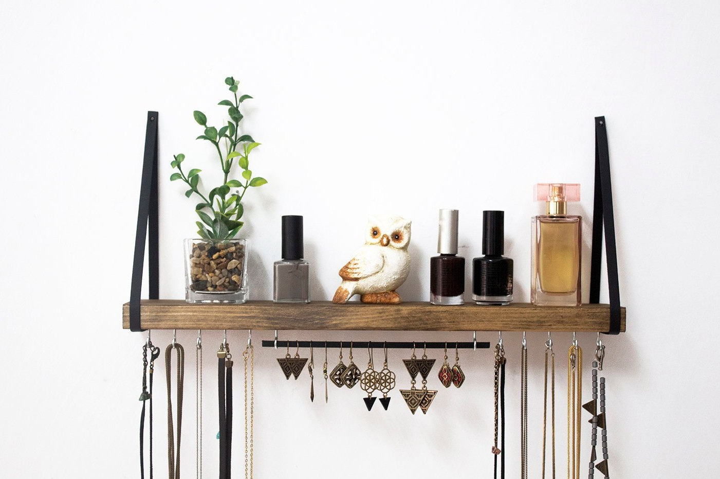 Wall Necklace Wood Holder With Shelf / Earrings Holder / Jewelry St...