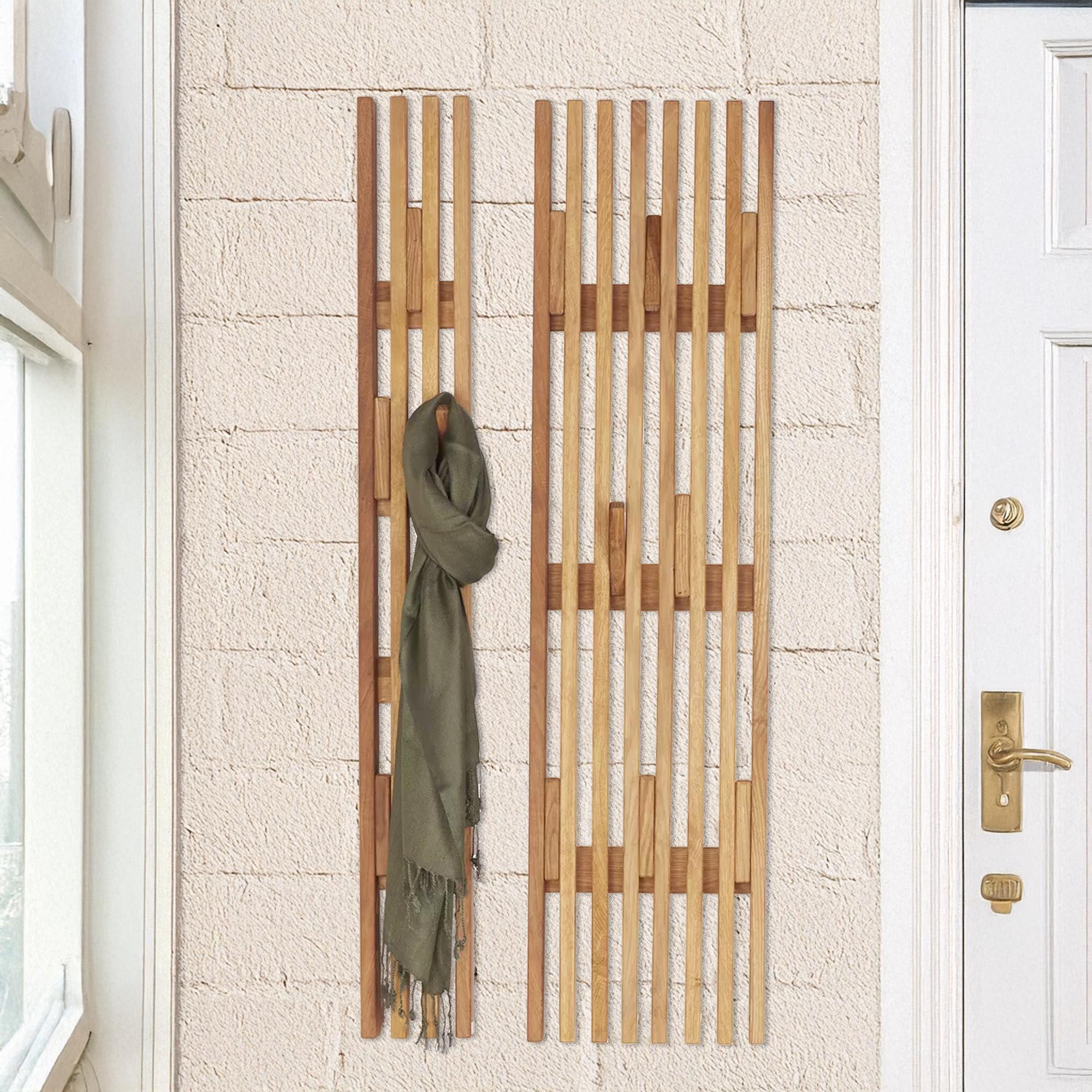"Oak Wall Coat Rack \"Serena\" - Minimalist Set of 2 Wooden Hanging Panels with Hooks...