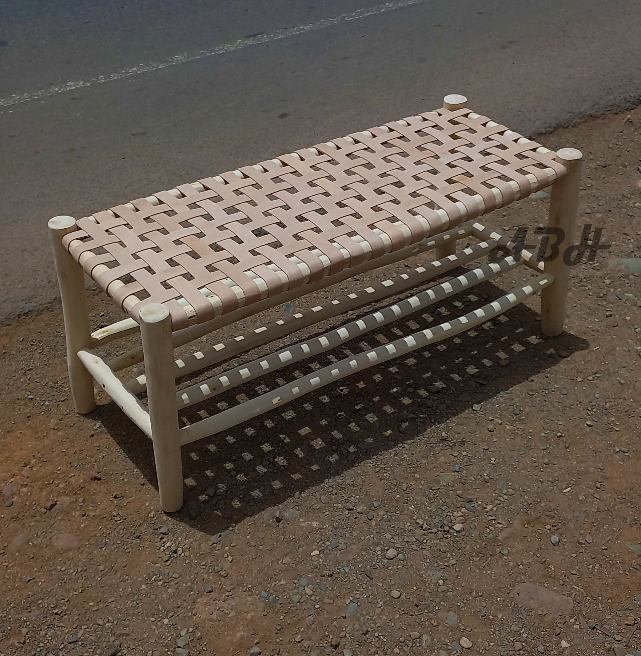 This storage bench in wood and nude leather. Item handmade by our Moroccan artisans, Practical in th...