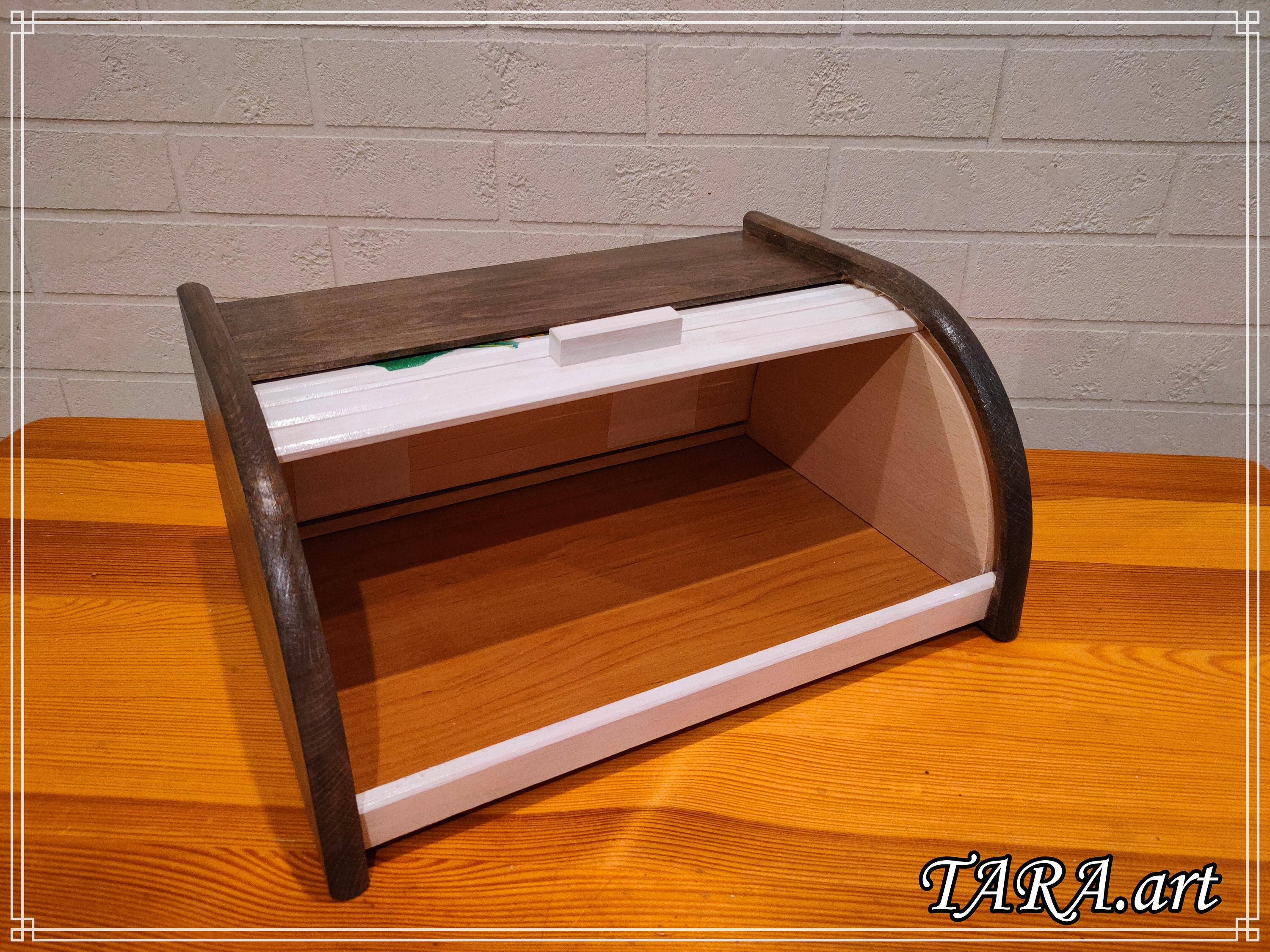"Dark brown bread bin with sunflowers, wooden bread box, bread box of wood, white/brown bread b...