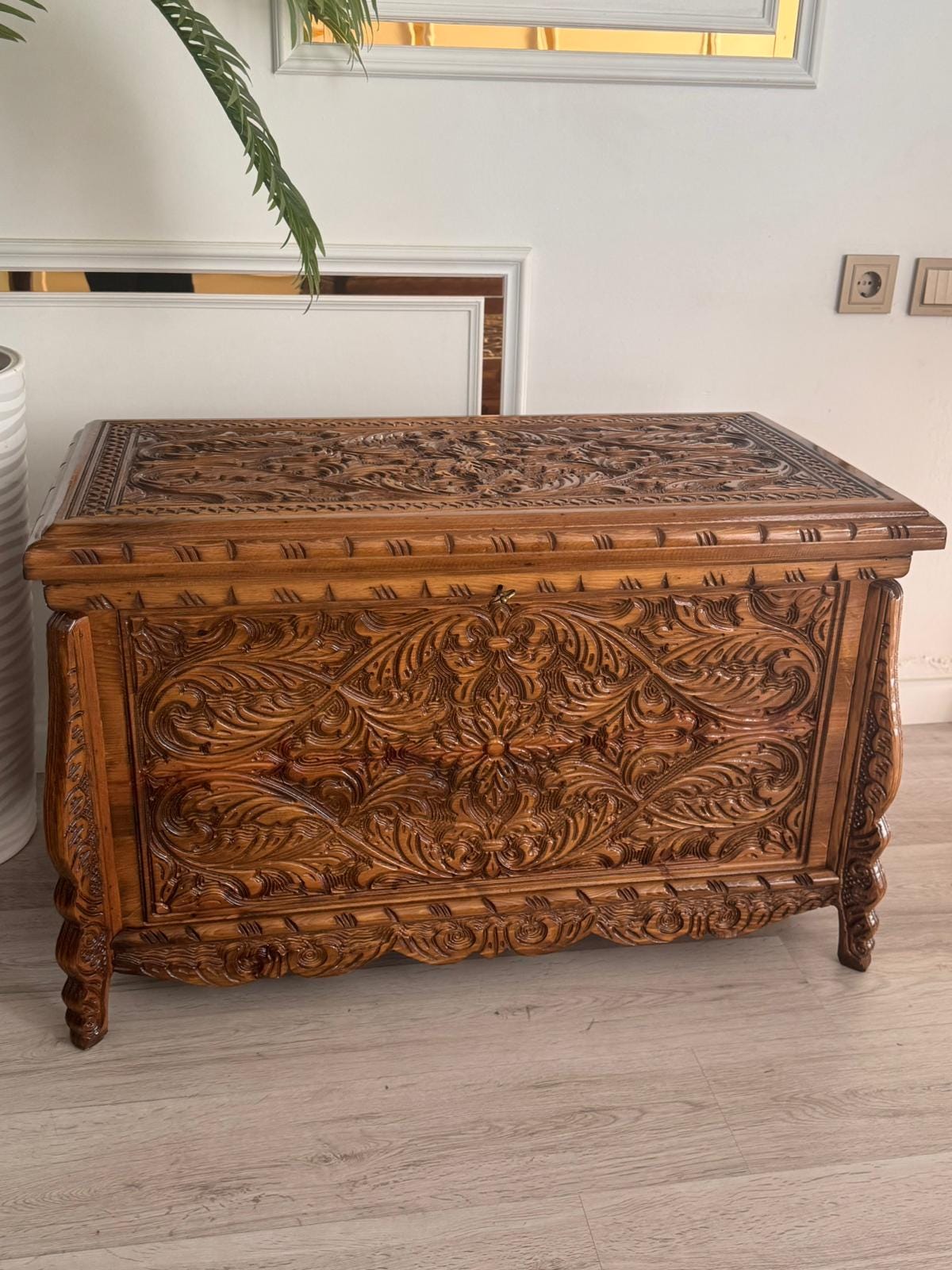 Wooden Turkish Traditional Trunk Coffee Table, Decorative Storage Box, Hand Carved Wood Storage Ches...