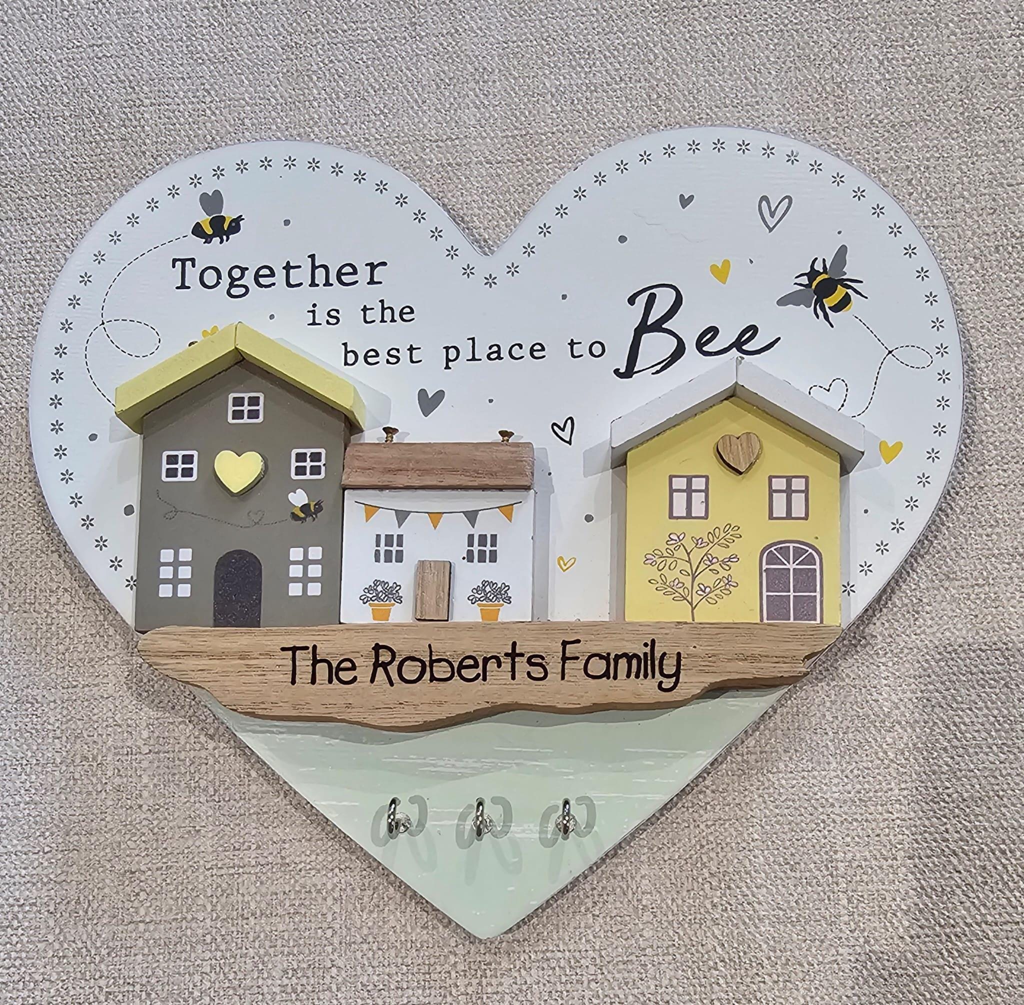 Personalised Wooden Key Holder, Perfect Couples Present. Bee Lovers...