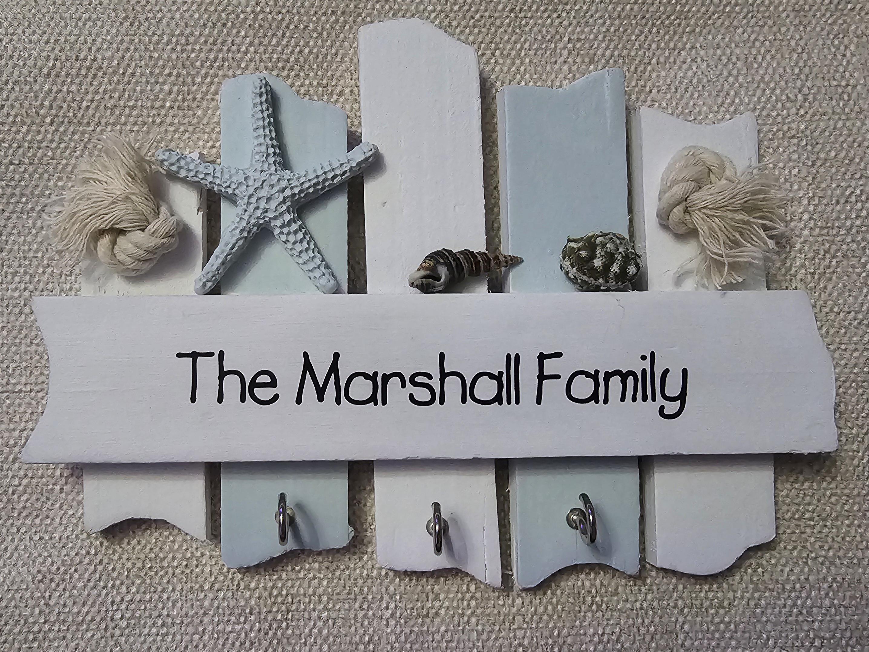 Wooden cottage key holder, Handmade house wall organizer, Coastal b...