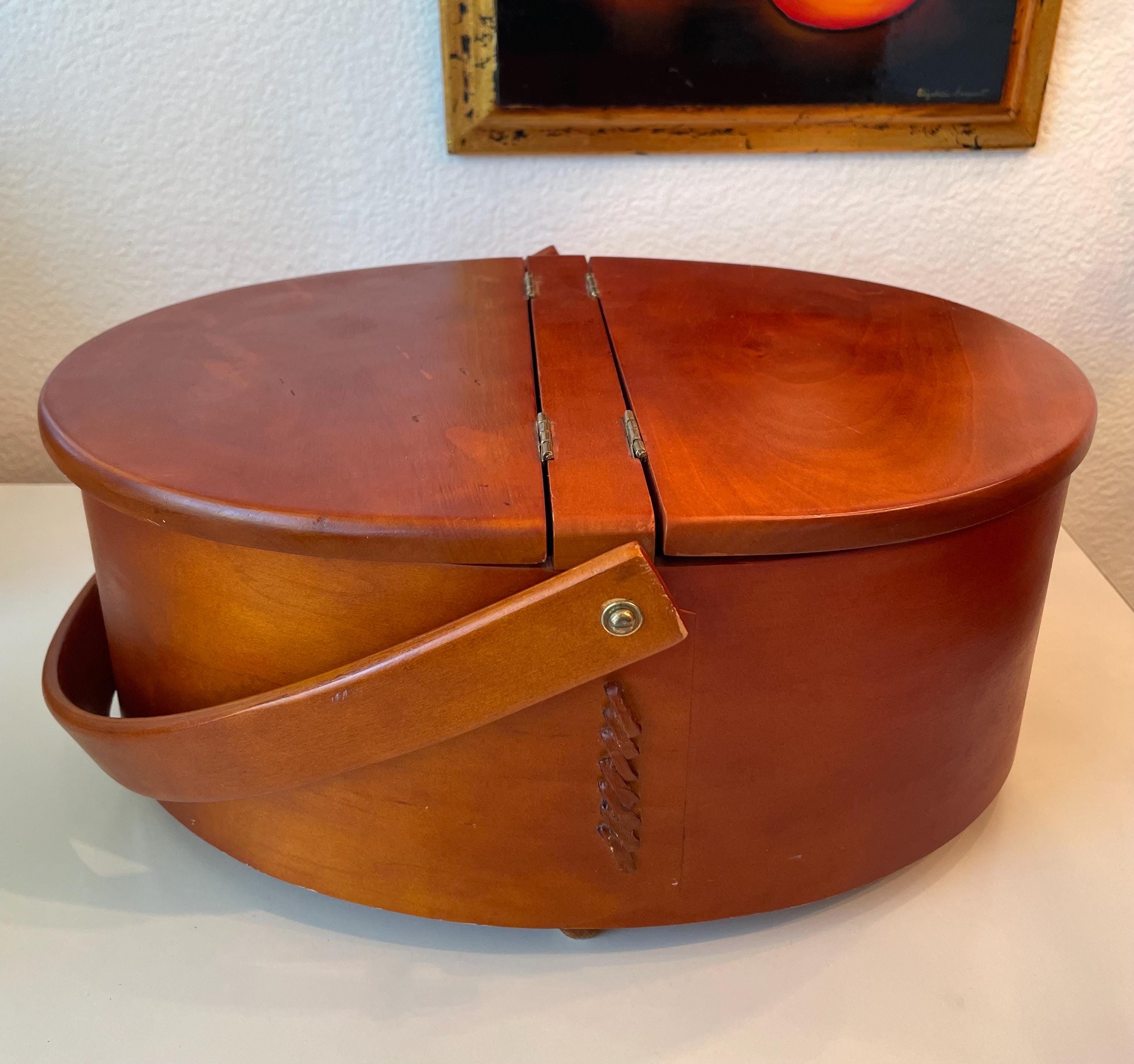 Vintage Oval Wooden Box with handle | Storage Box | Sweing Box | Do...