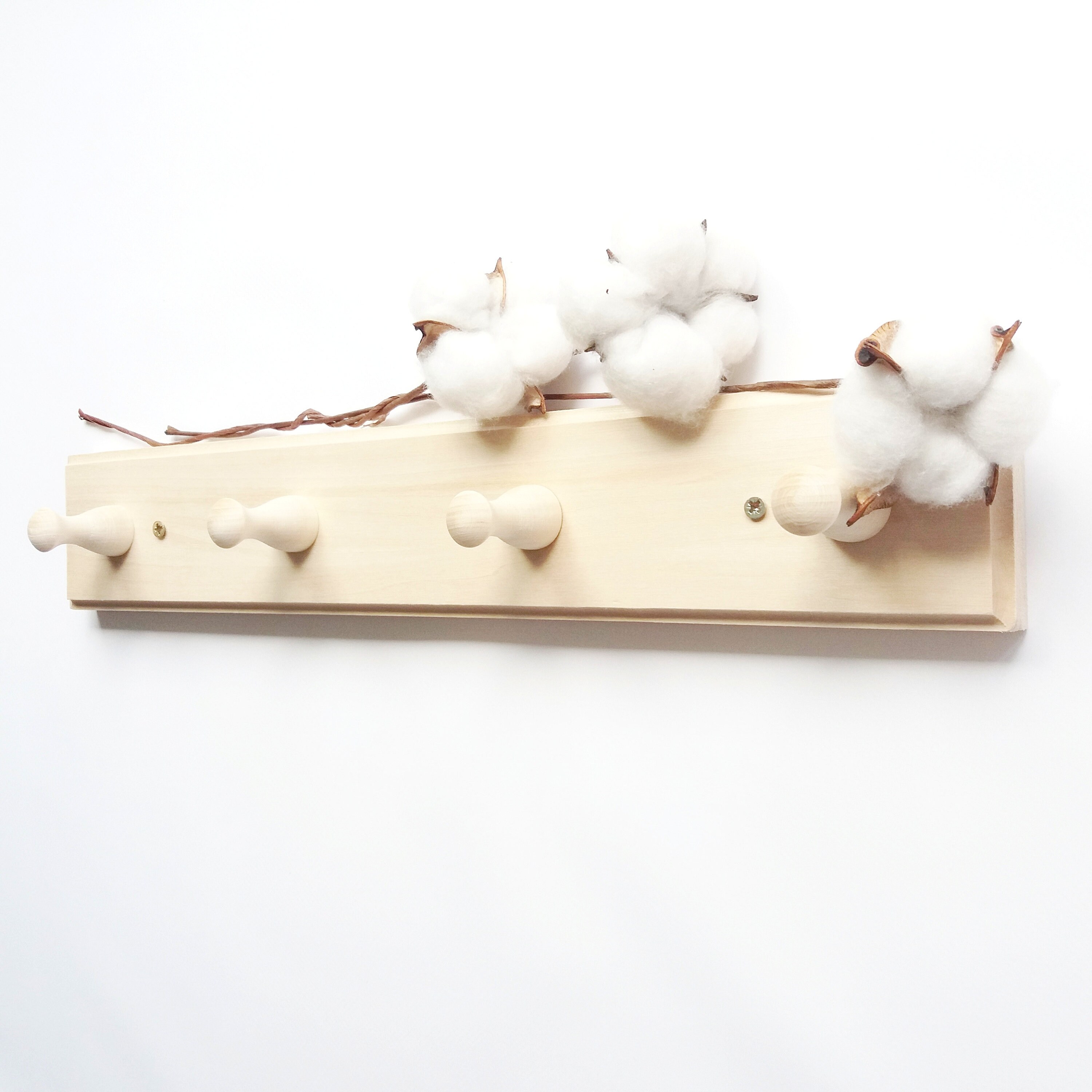4 Peg Shaker Peg Rail - Solid Oak Peg Rails, Wooden Coat Rack, Turn...