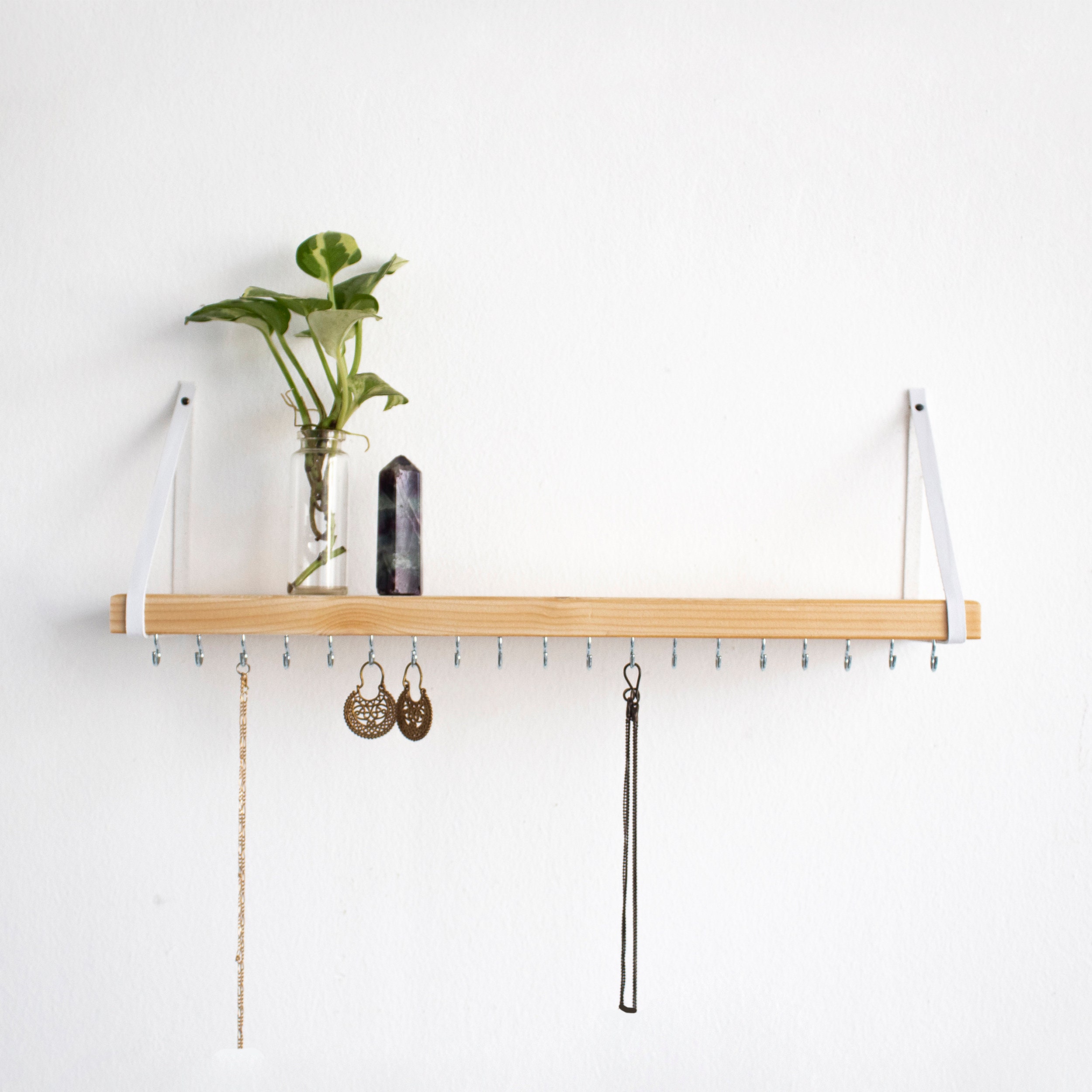 Wall Necklace Wood Holder With Shelf, Earrings Holder, Jewelry Stor...