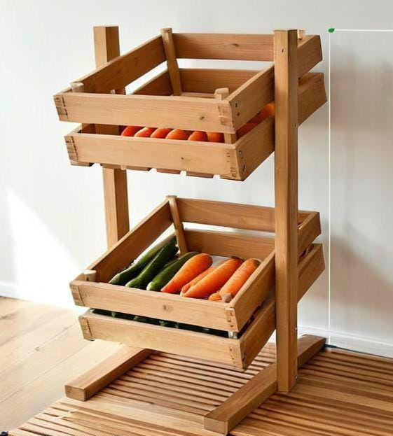 This is a PDF plan which explains how to build a DIY Wooden two-tier fruit and vegetable storage cra...