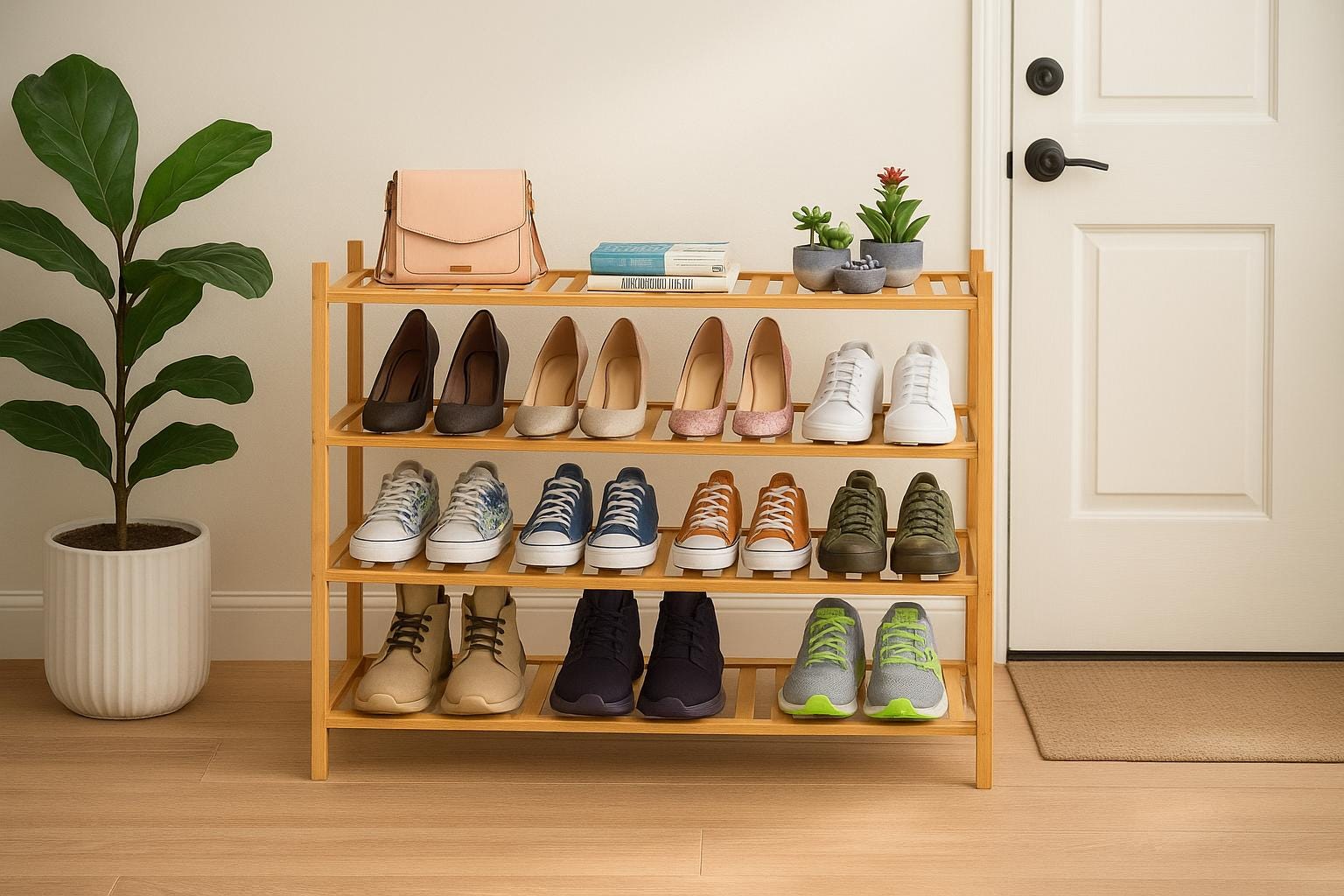4 Tier Wooden Shoe Rack | Bamboo Wood Shoes Storage | Entryway Shoe...