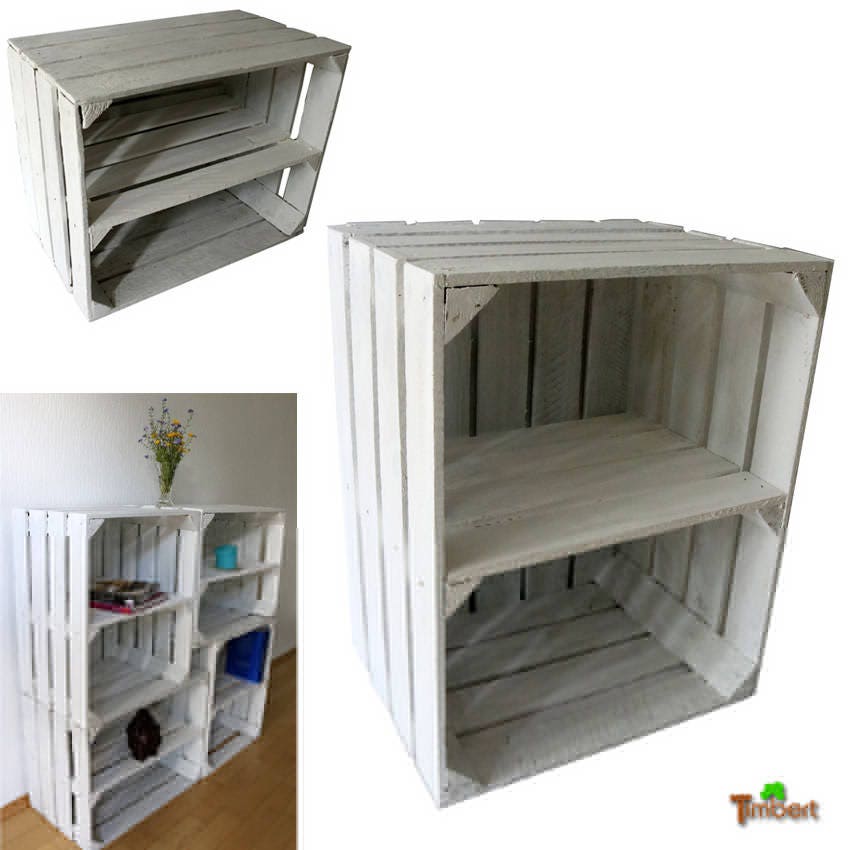 OLD WHITE FRUIT Crate with white intermediate board shoe rack woode...