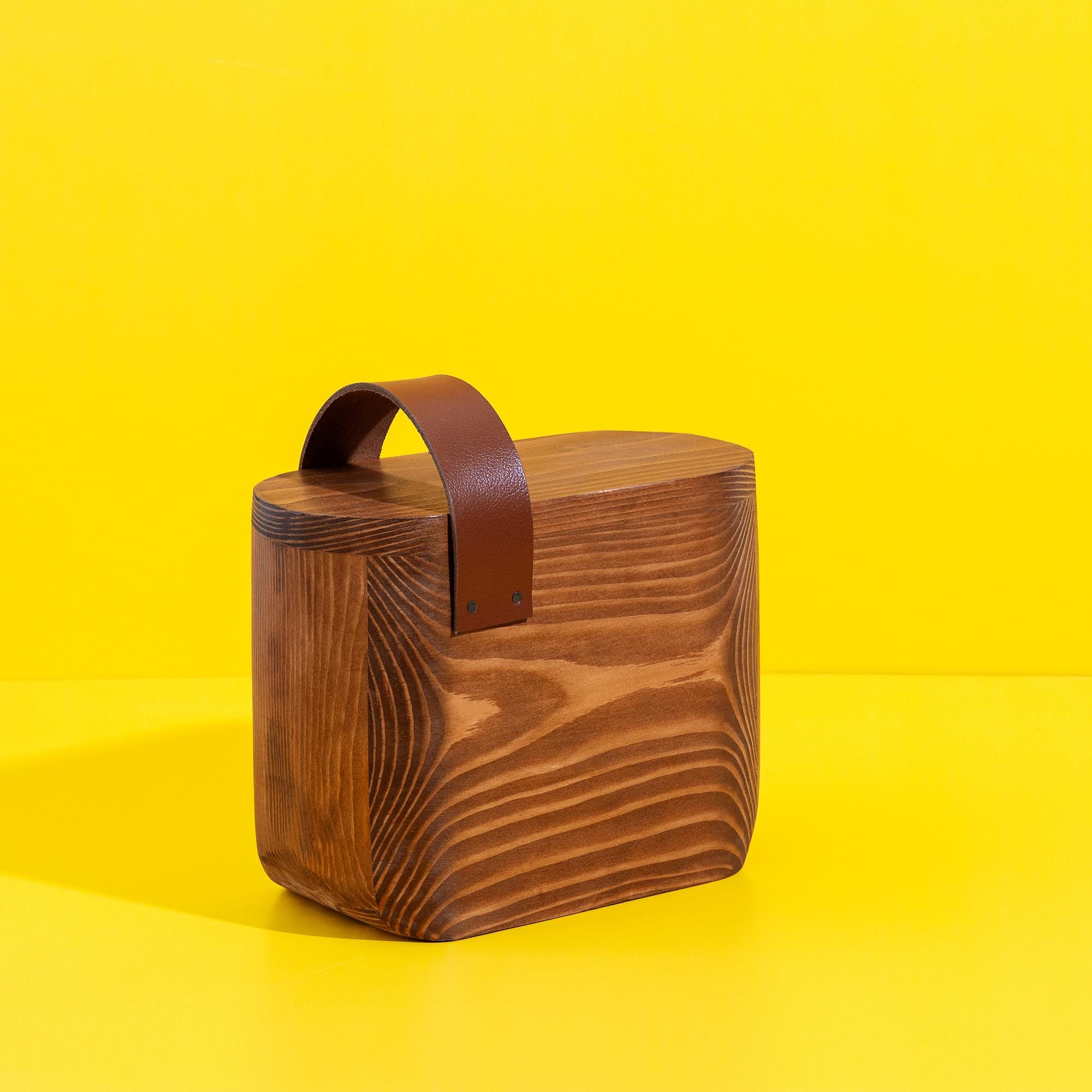 This handmade wooden step stool features a sleek design with a durable leather handle. Perfect for r...
