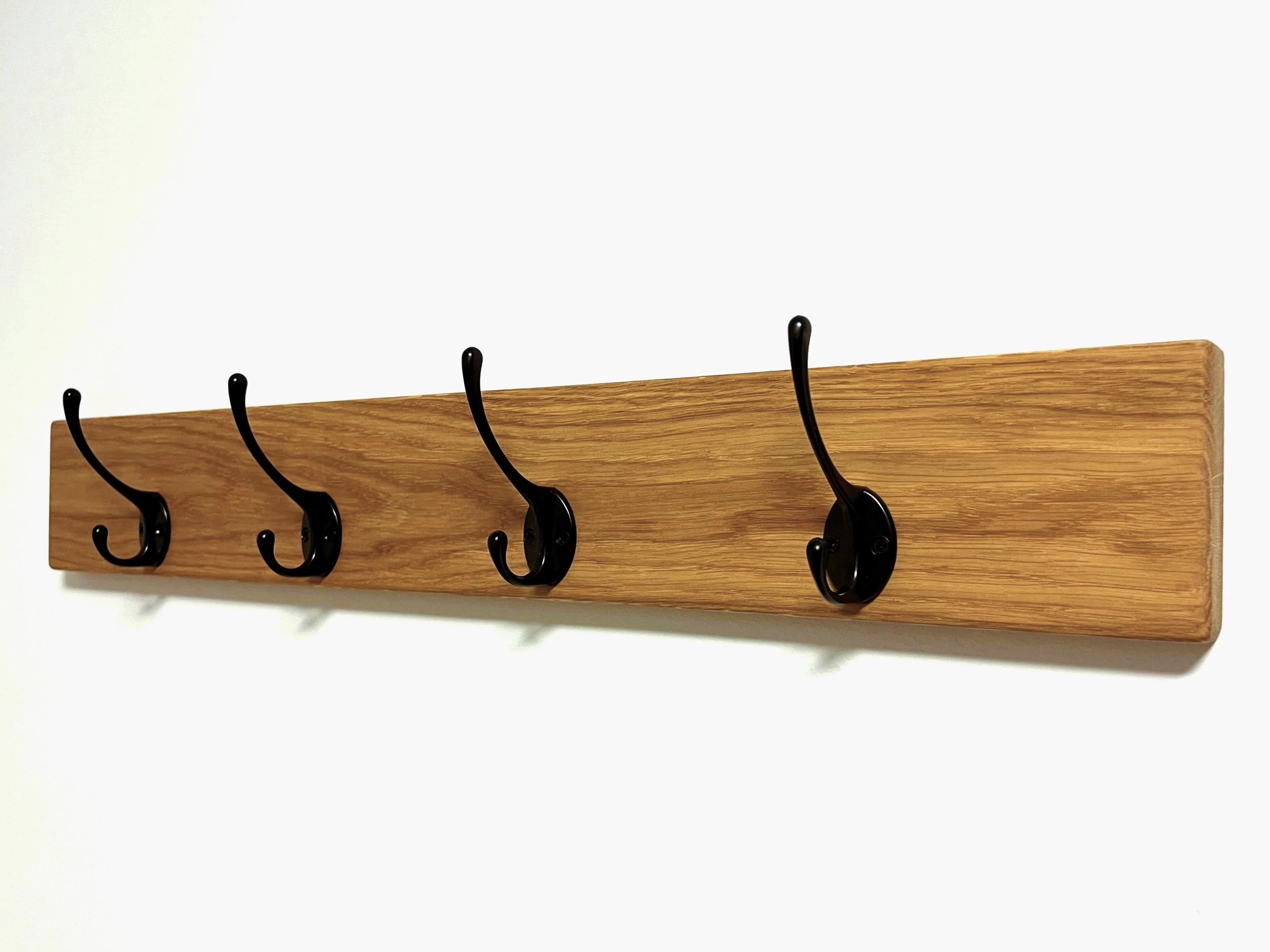 This listing is for a handmade solid oak wooden wall mounted rack, with Solid metal hooks. Solid Oak...