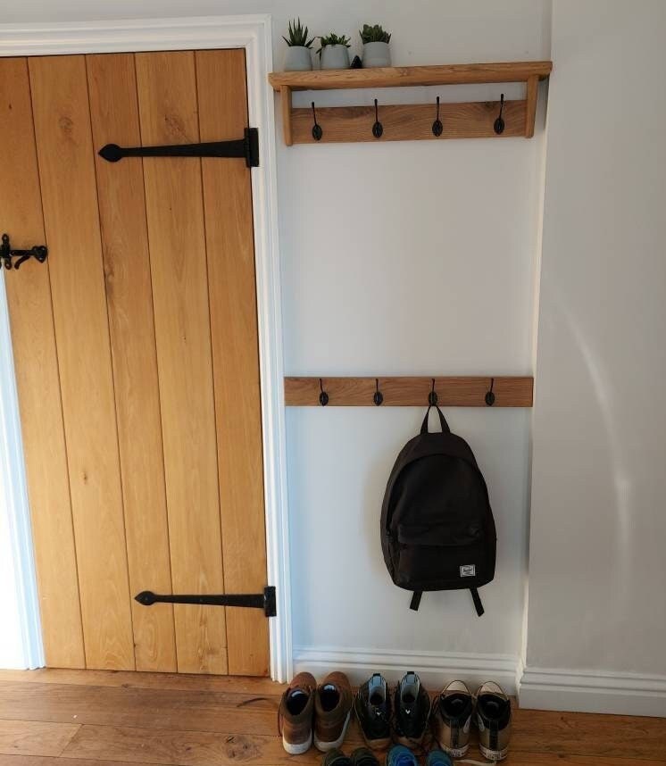UK Handmade Solid Oak Wood Rustic Wooden Wall Mounted Coat Hook Rai...