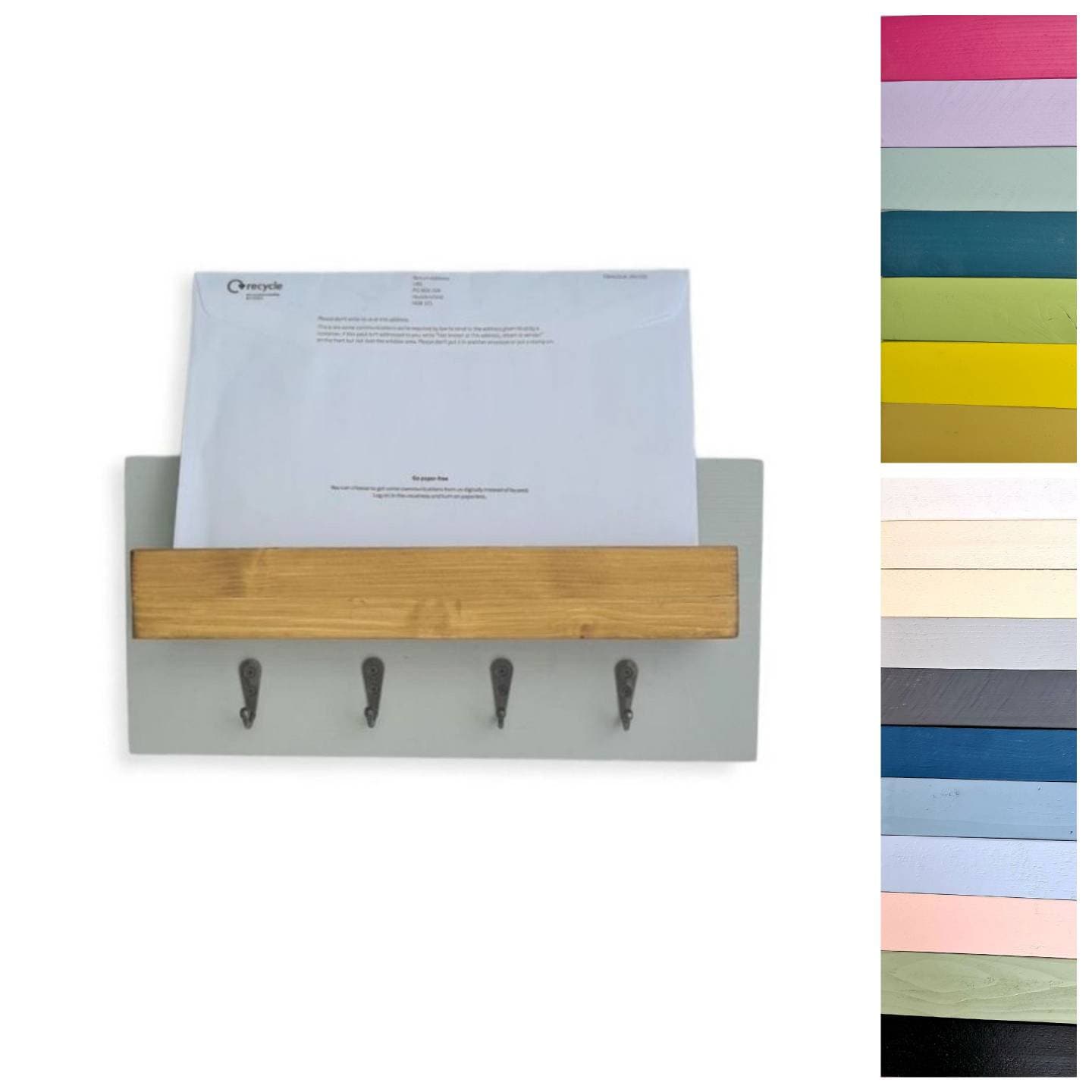 Rustic key hooks with shelf for post, Grey, White, Handmade wooden ...