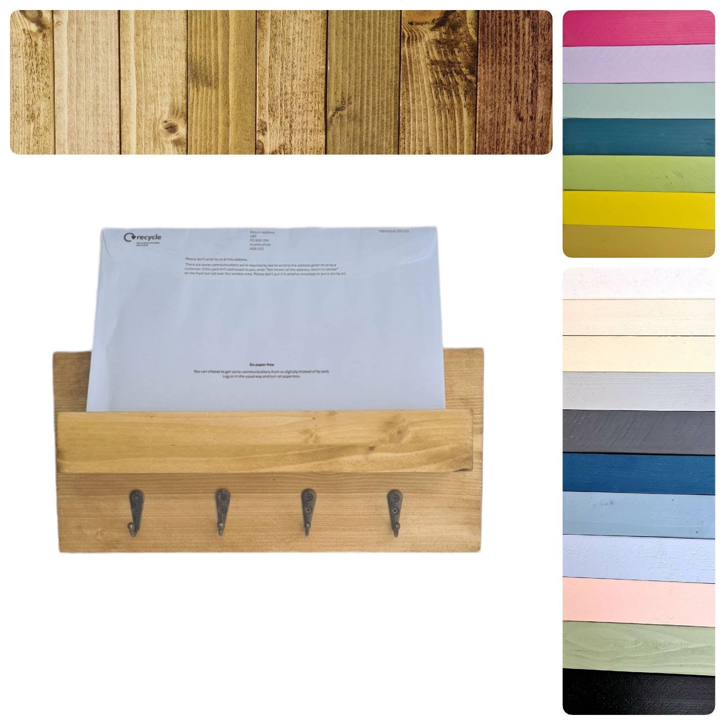 3D Wooden wall mailboxes with hangers bundle, mail organizer laser ...