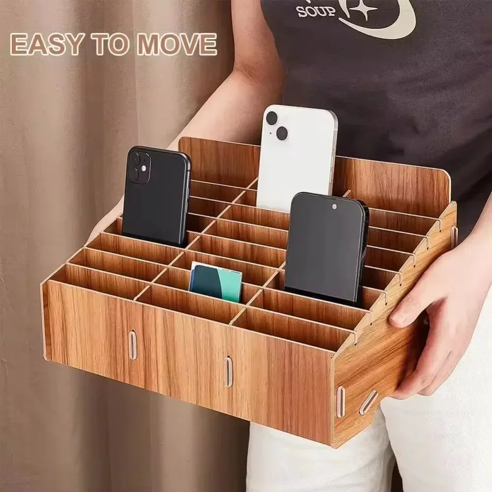 24-Grid Wooden Cell Phone Storage Box, Mobile Phone Management Stor...