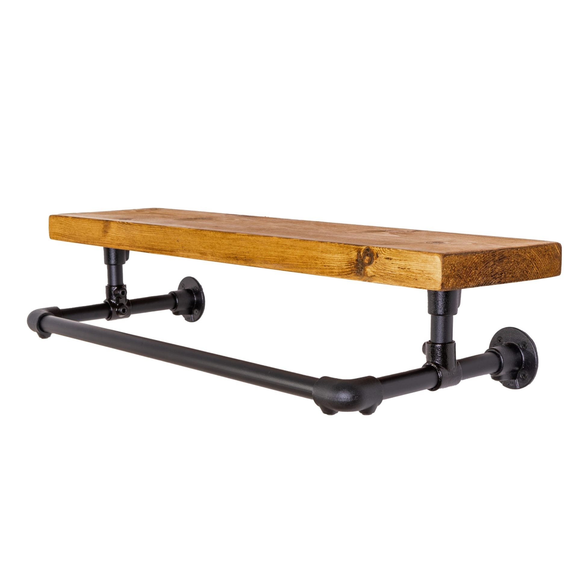 Elbow Key Clamp Clothes Rail With Solid Wooden Shelf | Industrial P...