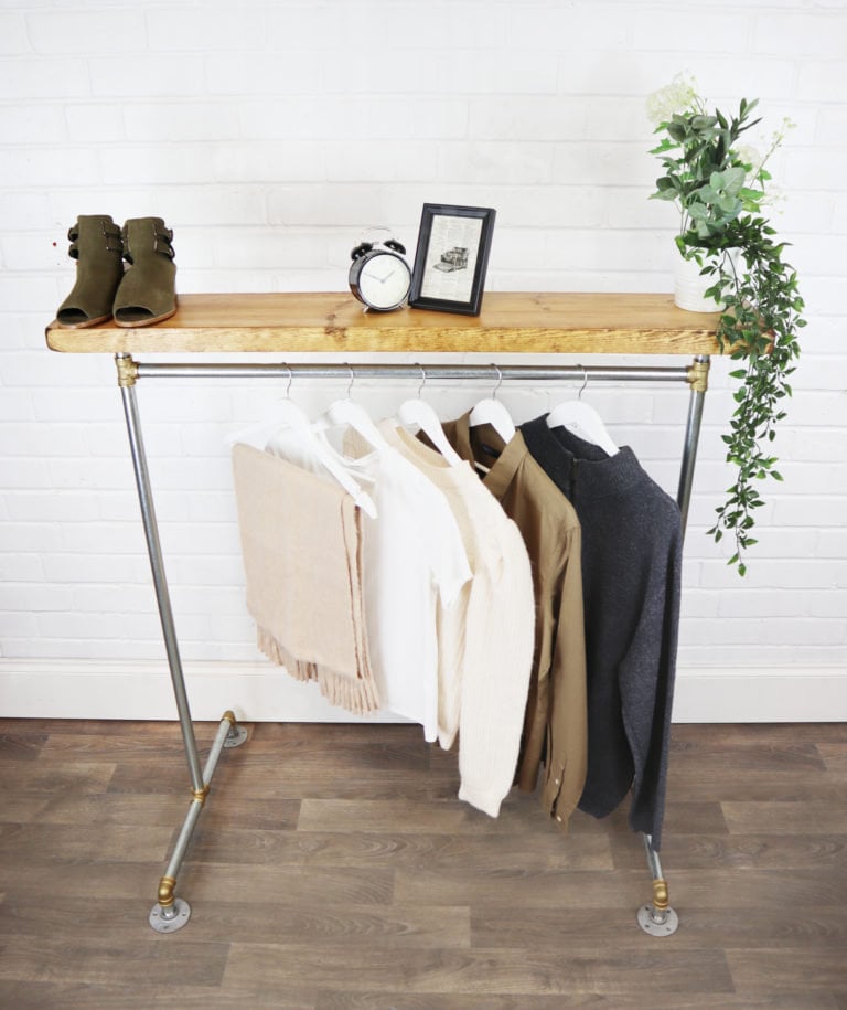 Elbow Clothes Rail With Solid Wooden Shelf | Industrial Copper Pipe...
