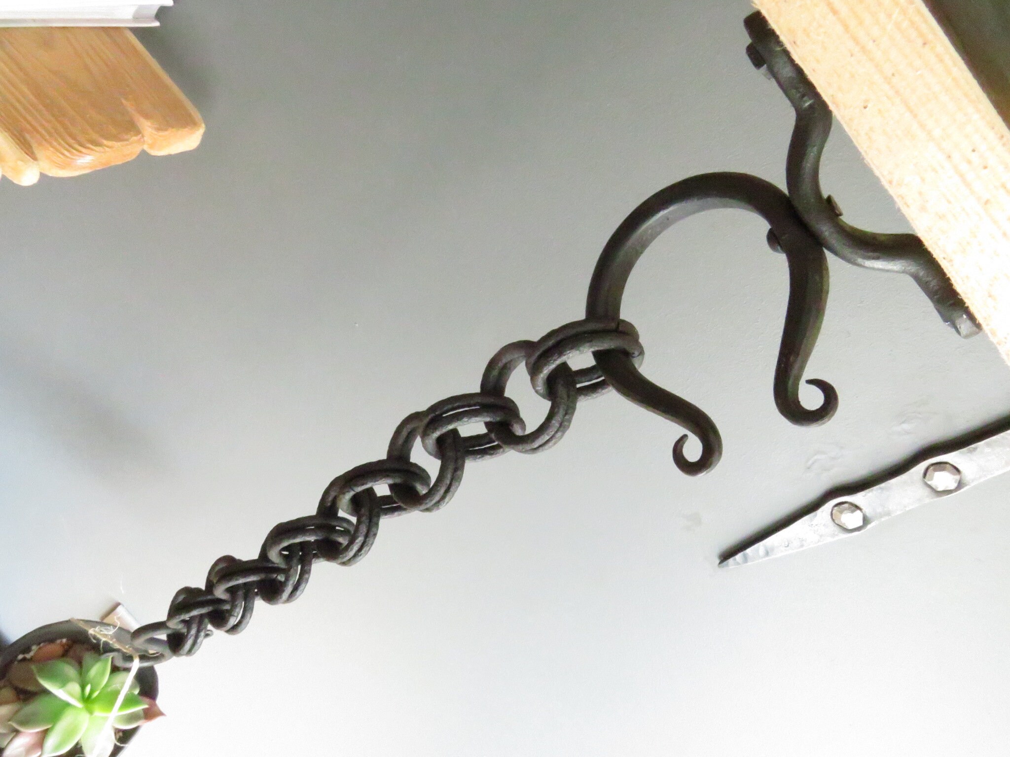 Wrought Iron Ceiling Hook, Black Steel Chain, Rustic Garden Decor