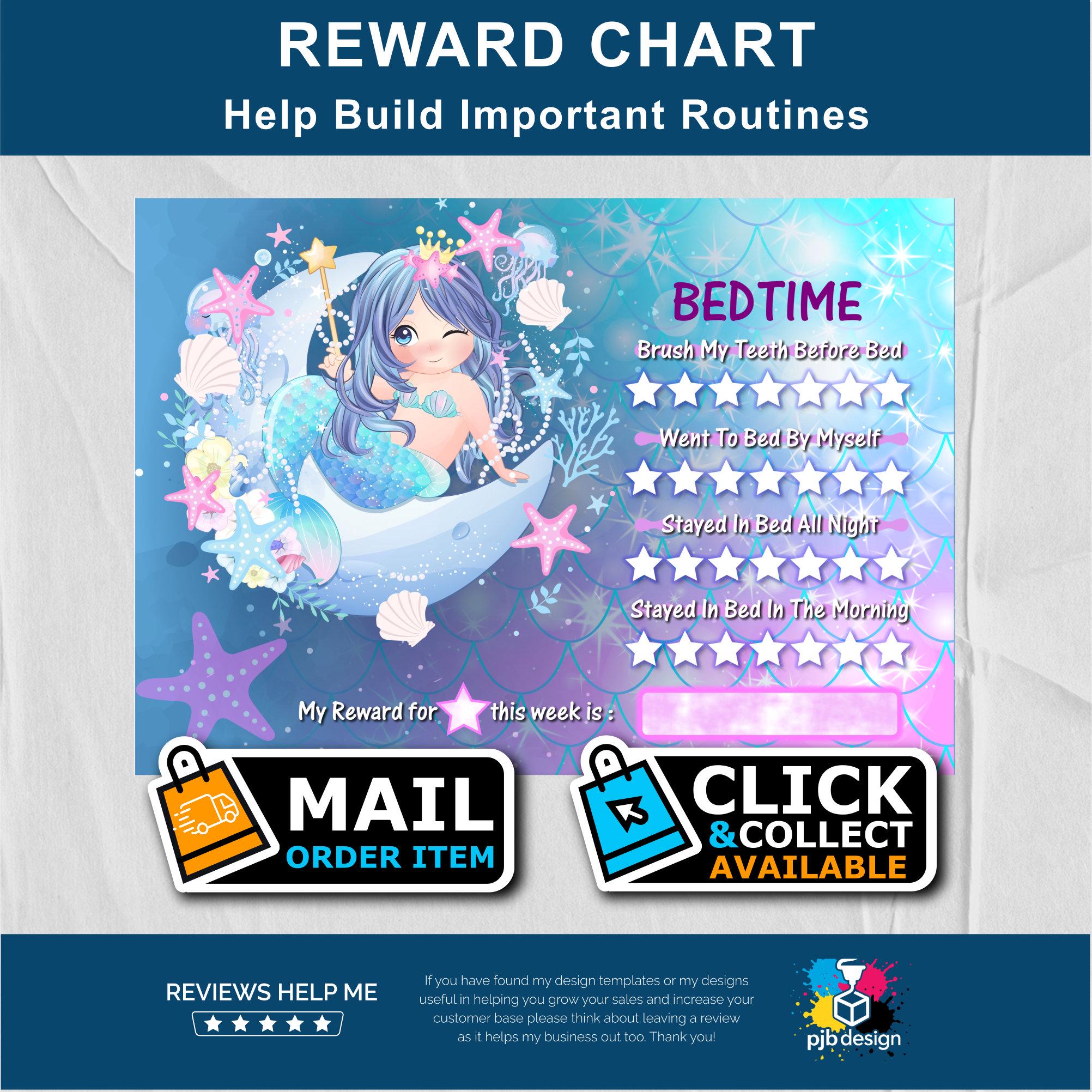 Little Mermaid Reward Chart: Toddler Bedtime Routine with Gold Star...