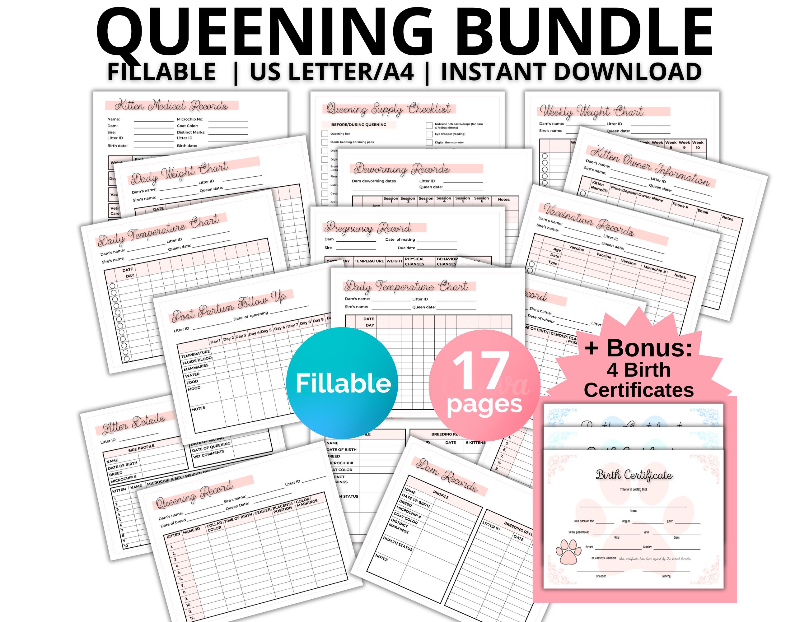 "Use this professional queening record bundle for your cat breeder business! This is a fillable...