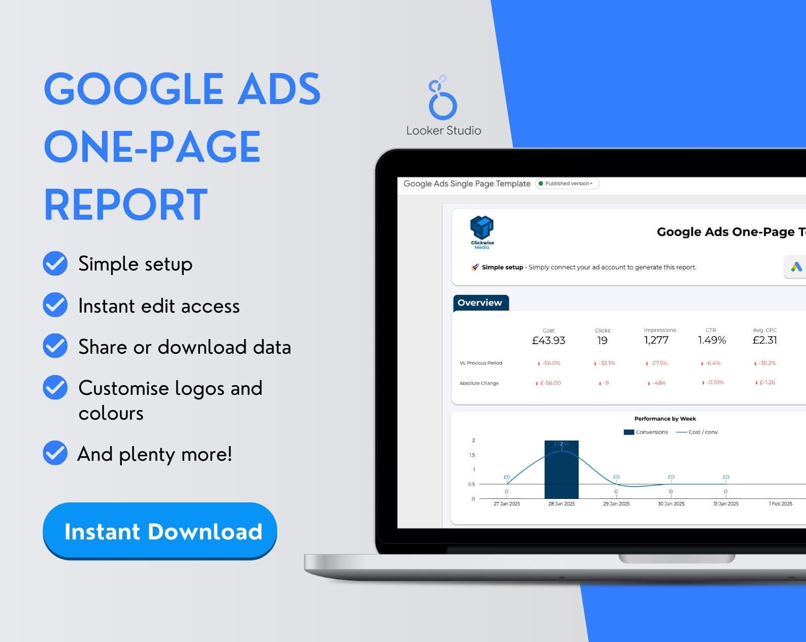 Google Ads One-Page Report: Looker Studio Performance (Digital Down...