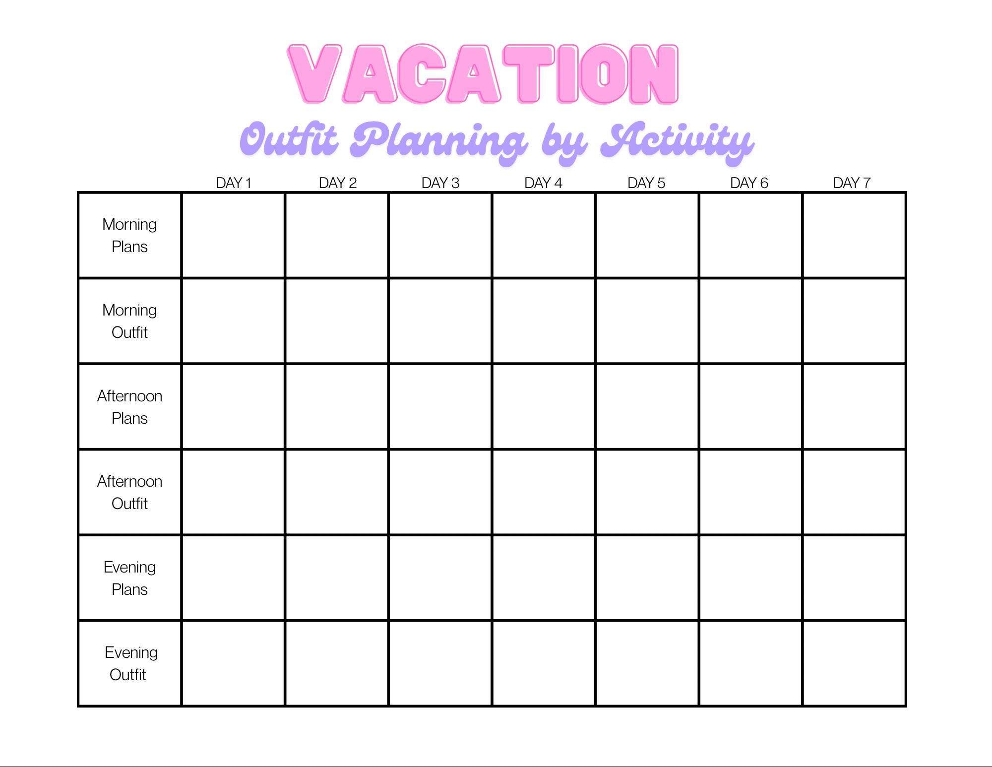 This is a fully editable Canva template for you to plan and pack outfits for a vacation. It is organ...