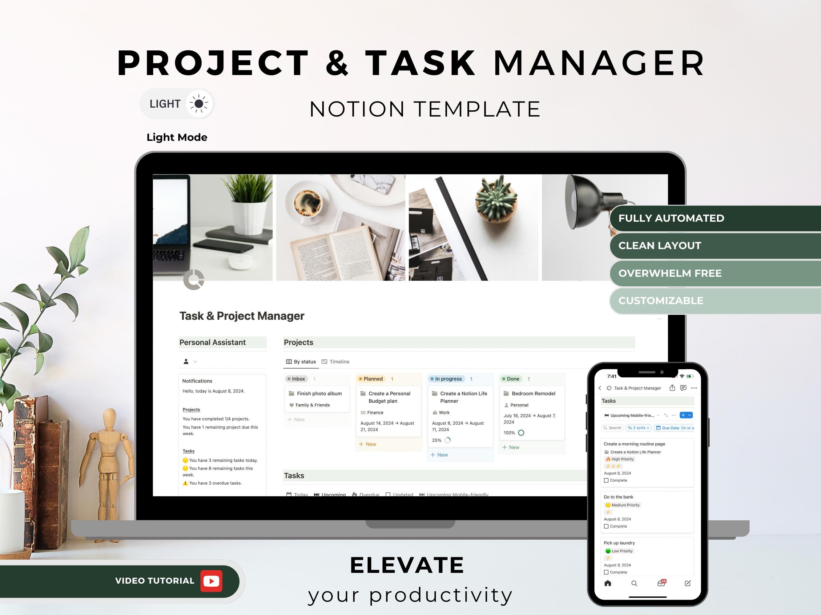 Project & Task Manager Notion Template: Daily Productivity Plan...