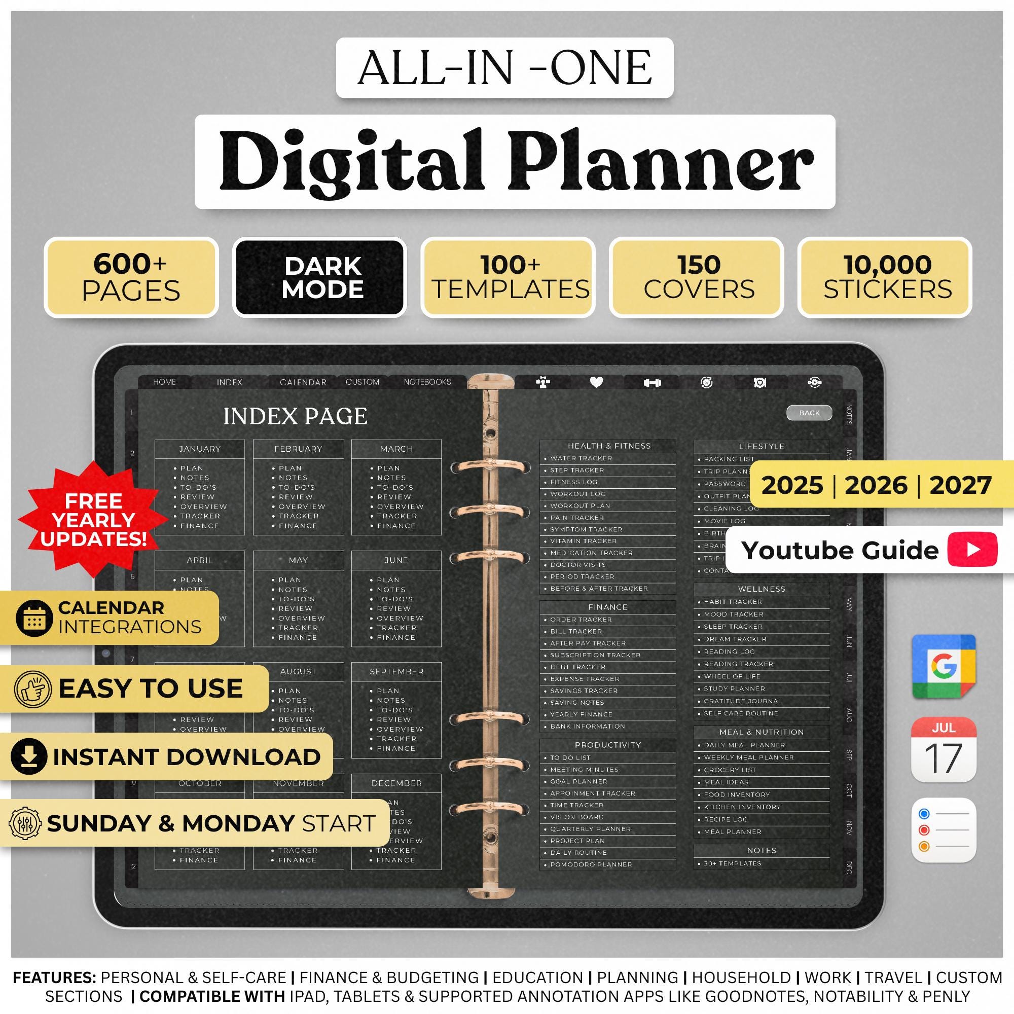 All-in-One Digital Planner 2025, 2026, 2027, Digital Planner, Digit...