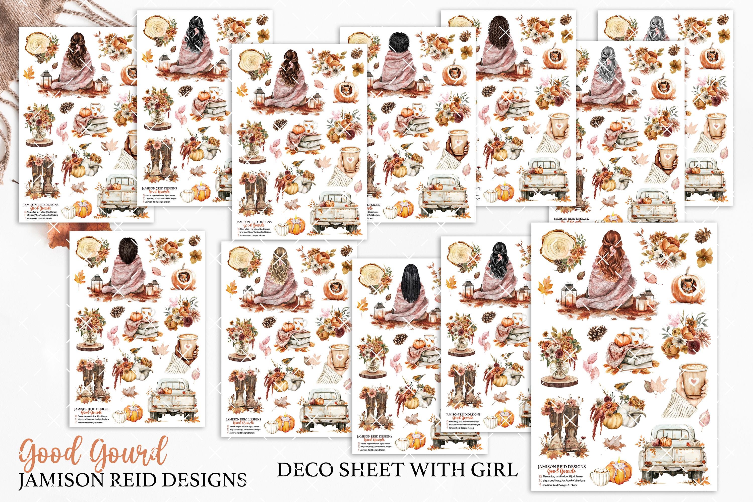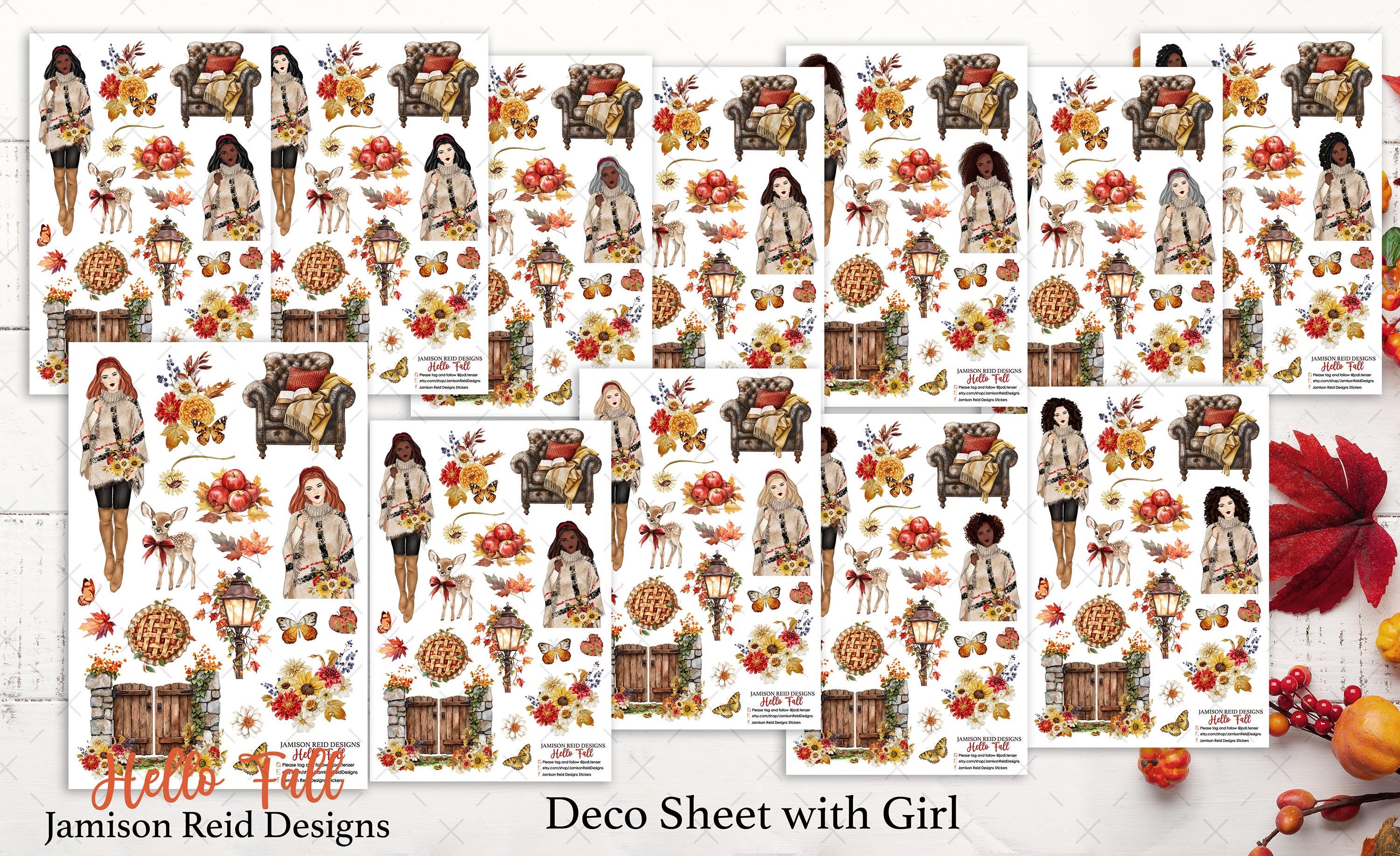 Hello Fall a la carte Planner Deco Sheet WITH GIRL , Fashion Girl S...